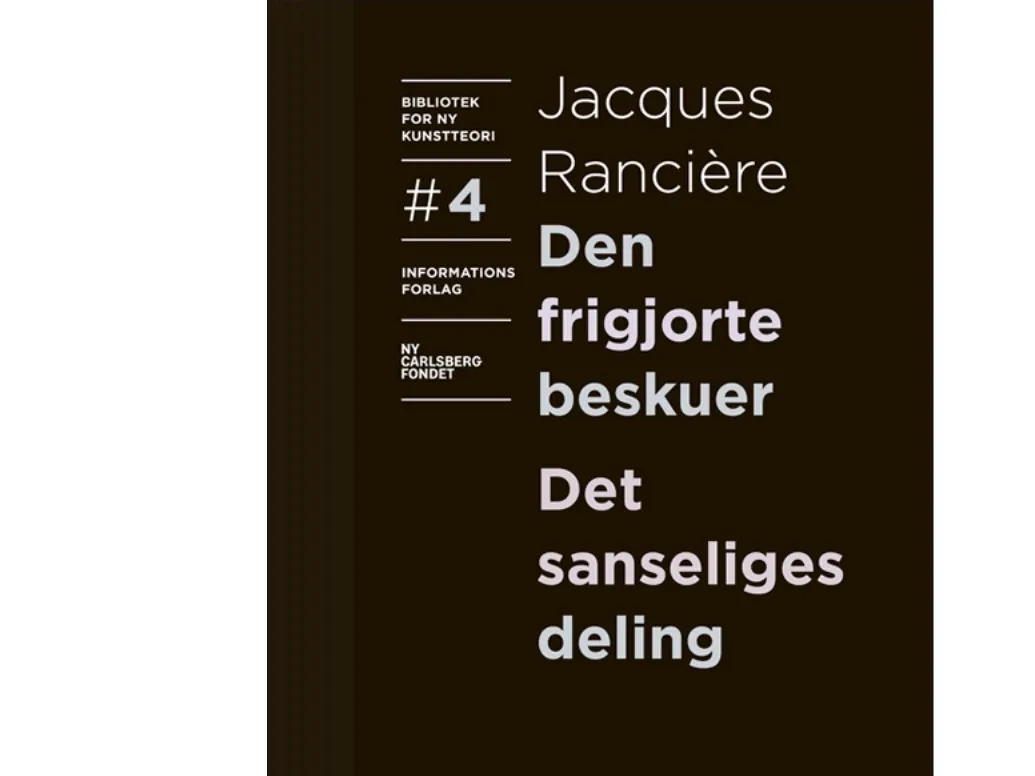 I Den frigjorte beskuer og Det sanseliges deling undersøger Jacques Rancière, hvordan nye politiske og sociale væremåder kan opstå, og hvilke roller kunsten spiller i organiseringen af en fælles, sansemæssig virkelighed.