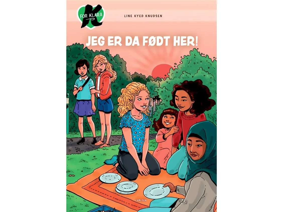 Jeg er da født her! er bog nummer 23 i serien K for Klara, der handler om familie, skole og hverdag.