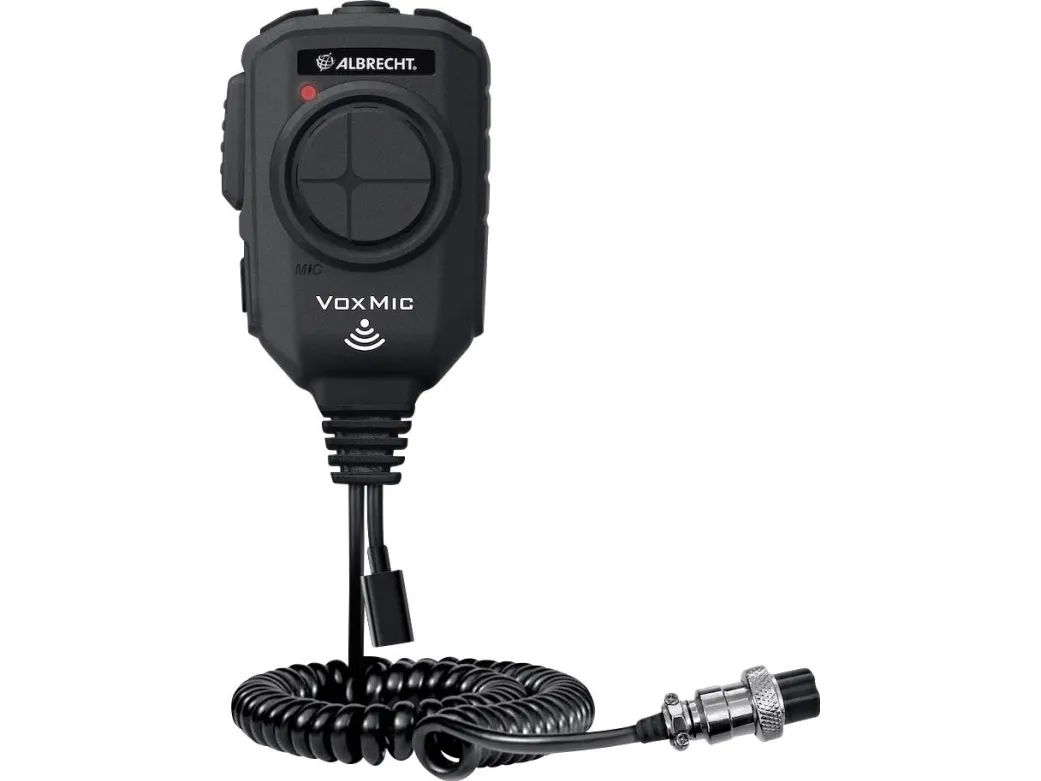 CB-radio VOX mikrofon Til direkte kommunikation i køretøjet (i overensstemmelse med § 23, stk. 1a, i StVO, was 01.07.2021 a) Up/Down-knapper Integreret batteri 3000 mAh (genopladeligt) Driftstid: Ca. 60 timer Anvendelse under opladningen er mulig Micro-USB stik til opladning af mikrofonen Tilslutning: 6-polet CB-radiostik Albrecht CB-radio VOX mikrofoner giver den perfekte løsning til håndfri kommunikation i køretøjer i overensstemmelse med § 23 (1a) i færdselsloven, der forbyder anvendelse af mikrofoner manuelt i køretøjer fra den 01.07.2021. Mikrofoner kan anvendes med næsten alle CB-radioer på markedet. Den integrerede Active Noise Cancelling-funktion filtrerer forstyrrende baggrundsstøj fra og giver en meget klar taleoverførsel. Det integrerede batteri har en driftstid på ca. 60 timer og kan også oplades under brug af mikrofonen.
