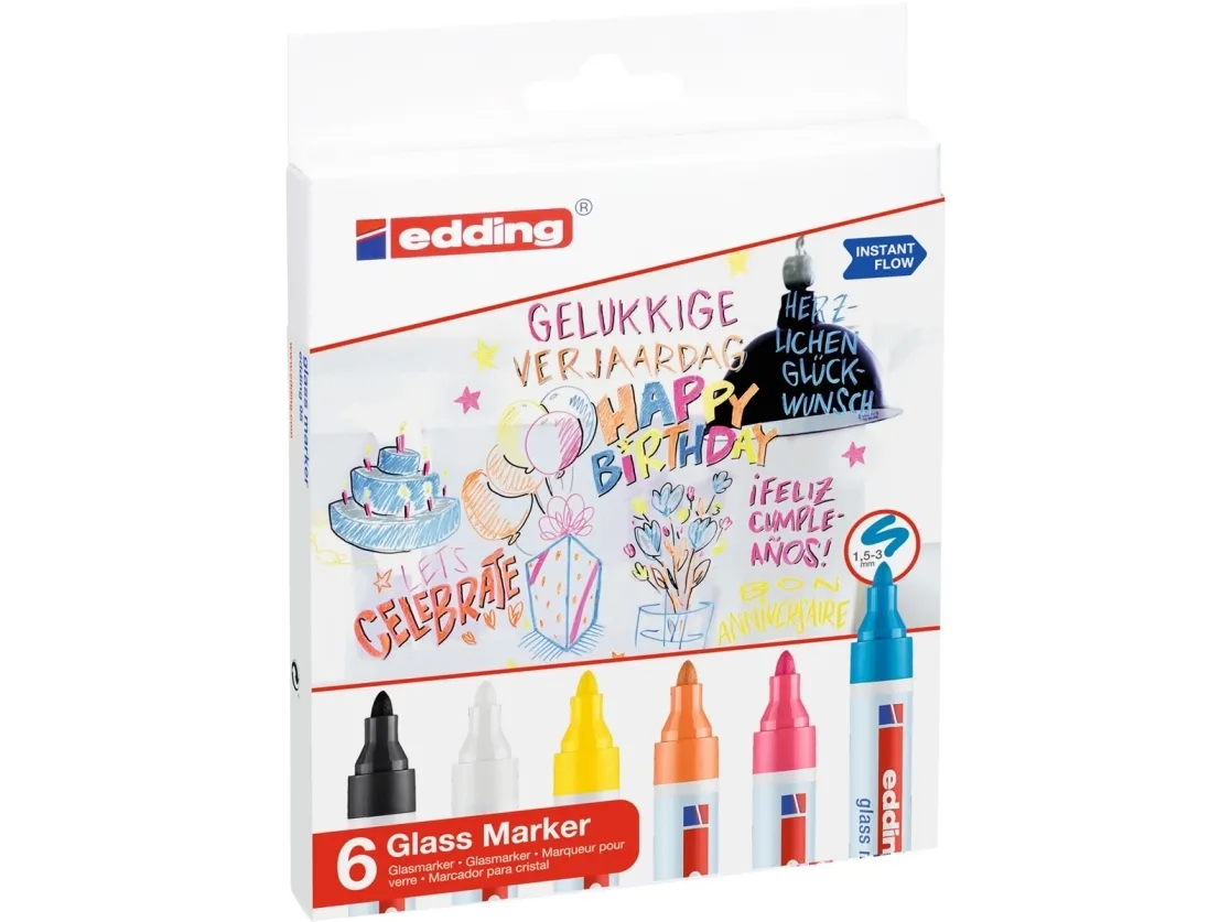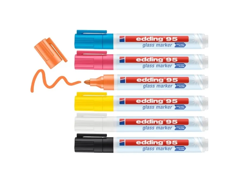 Edding Tusch til glas e-95/6S 4-95-6 Gul, Lyseblå, Orange, Pink, Sort, Hvid 1.5 mm, 3 mm 6 stk