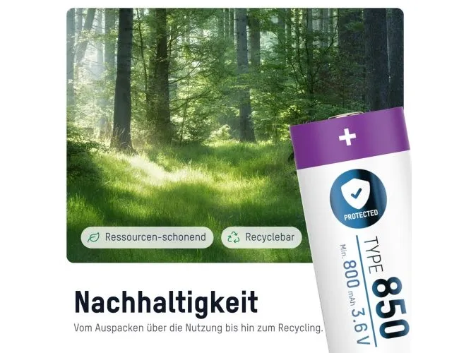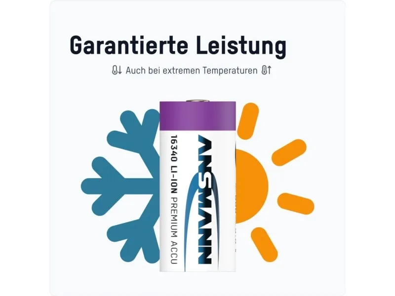 Ansmann Li-Ion-batteri 16340 850 mAh Det integrerede Safety Board beskytter cellen mod overopladning, overbelastning, kortslutning eller dybdeafladning. Dermed er batteriet perfekt beskyttet mod forkert håndtering, was en lang levetid I sammenligning med traditionelle NiMH-batterier har Li-Ion teknologien tilnærmelsesvis den dobbelte energitæthed ved samme størrelse. Ansmann 16340 Li-ion-batteriet har en ekstremt lang levetid og kan også oplades op til 2000 gange under hårde betingelser. I kraft af den meget lave selvafladning holder batteriet sin energi over et langt tidsrum, også når det ikke bruges. Desuden er Li-ion cellens vægt i forhold til almindelige batteriteknologier (for eksempel NiCd/NiMH/PB) med samme effekt meget lavere. Det eksklusive litium-ion-batteri fra Ansmann er ideal ideelt til anvendelse i moderne apparater som LED-lommelygter, pandelamper, e-cigaretter, laser-stifter og så videre. Cellen har en kapacitet på 850 mAh og er derfor ideal for strømslugere med Hohem. Derudover kan batteriet anvendes over et stort temperaturinterval på -20°C til +60°C.