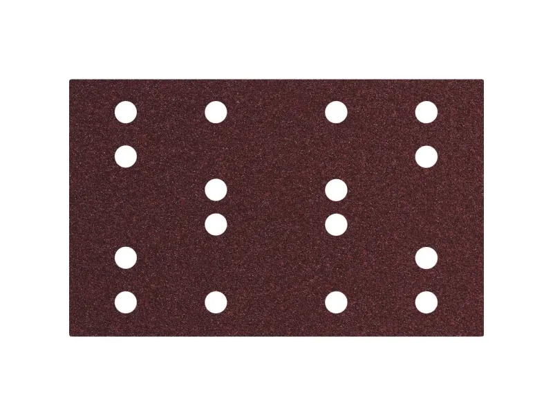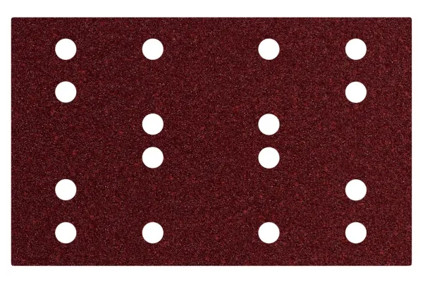 Hæftesliblade 80 x 133 mm, P 120, 16 huller, med velcro (SRA) • Slibepapir af høj kvalitet med halvåben spredning og høj spåntagende effekt• Til finnyre, massivt træ, polyester, stål- og rustfri stålplader, NE-metaller, Letmetaller• Til slibning af finerede skabsfacader og sidedele, slibning af foliebelagte møbeldele med smeltelim-kanter, dekorationsslibning af rustfri stålplader, reparationsslibning og afgratning af pladeudskæringer og så videre