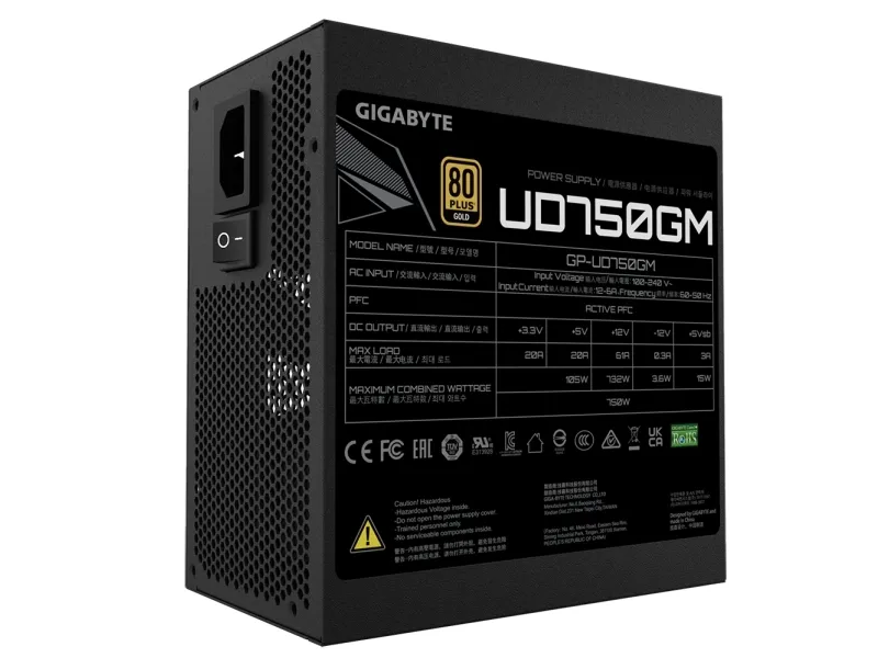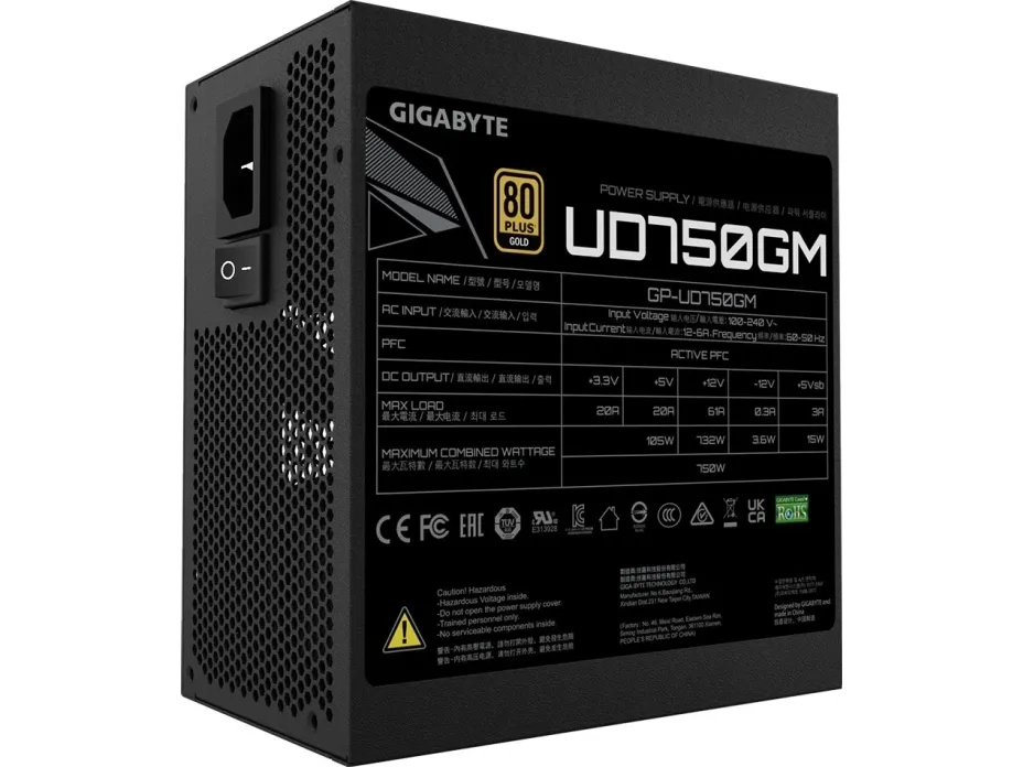 Gigabyte UD750GM - Strømforsyning (intern) - ATX12V 2.31/ EPS12V - 80 PLUS Gold - AC 100-240 V - 750 watt - aktiv PFC