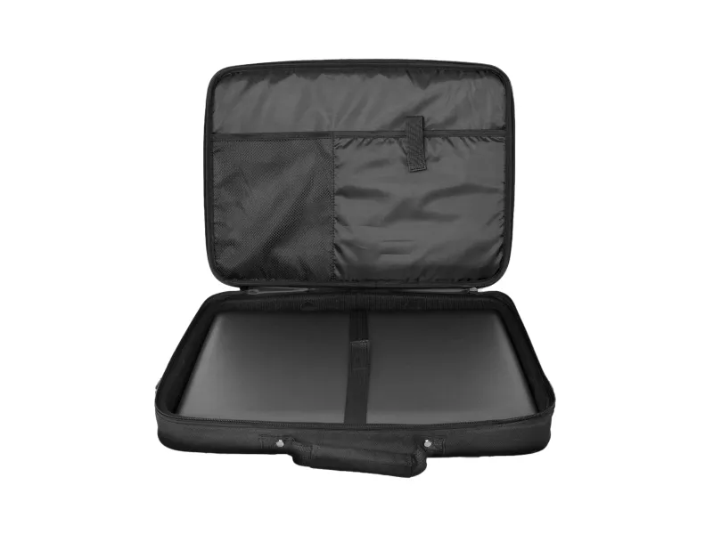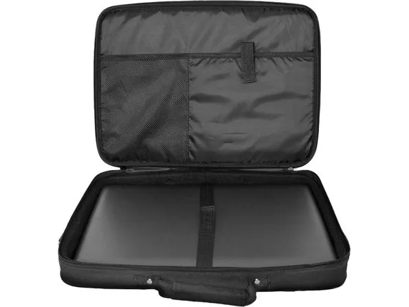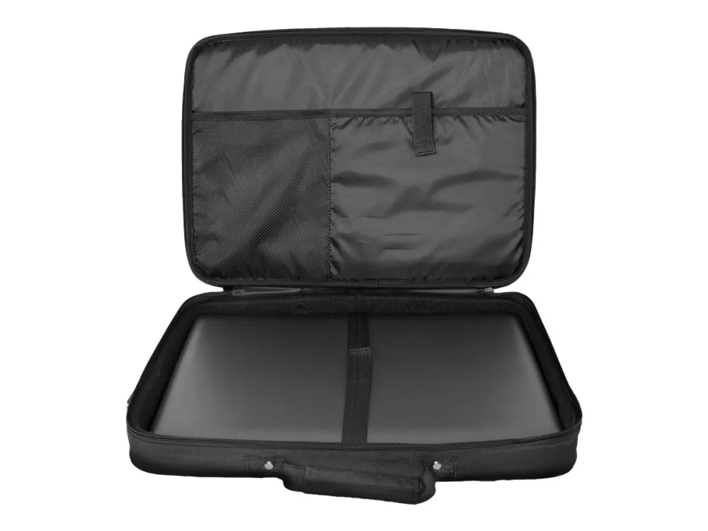 Safe and comfortable transport of notebooks up to 15.6 inches is given with the ultron Case Plus clamshell notebook case with high-quality metal components. The padded notebook compartment protects the device from the weather, scratches and bumps, while a metal wire frame provides additional protection. Other accessories can easily be stored in the front pocket. Thanks to the adjustable and detachable shoulder strap, the Case Plus is also the ideal companion when travelling. Further comfort is provided by the padded carrying handles.