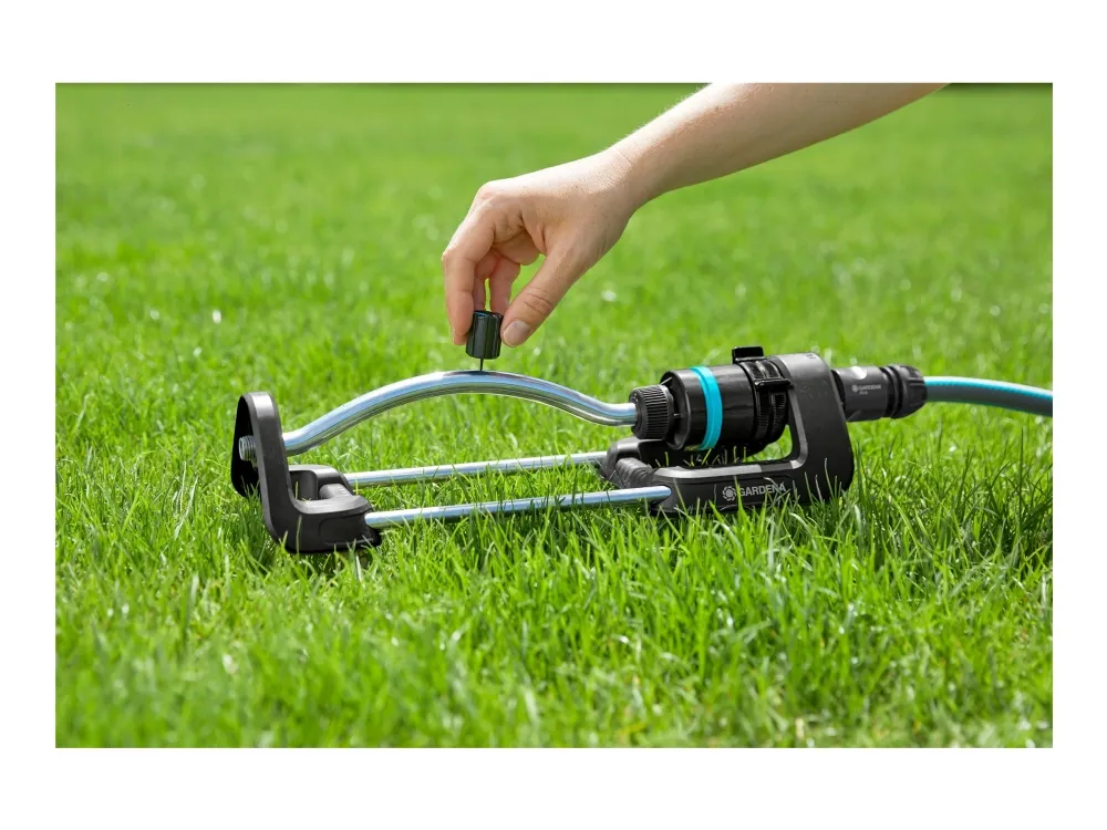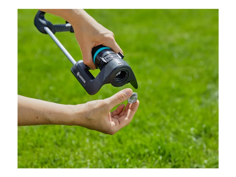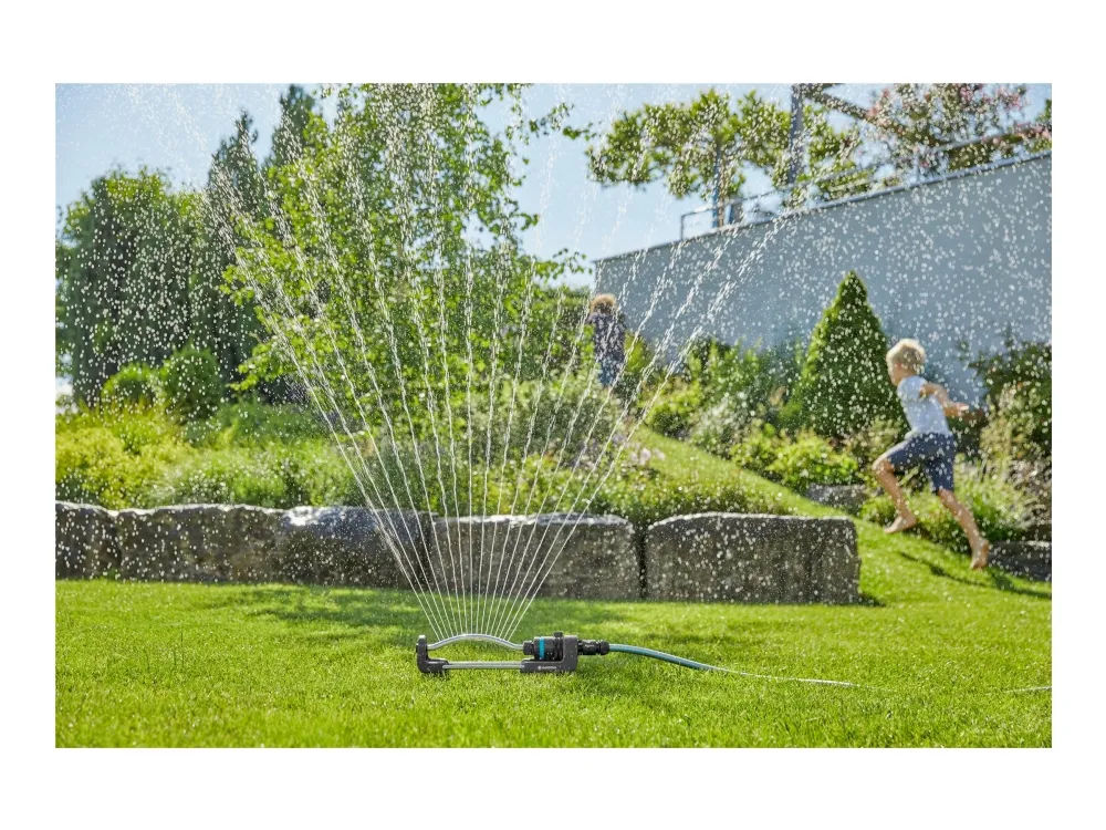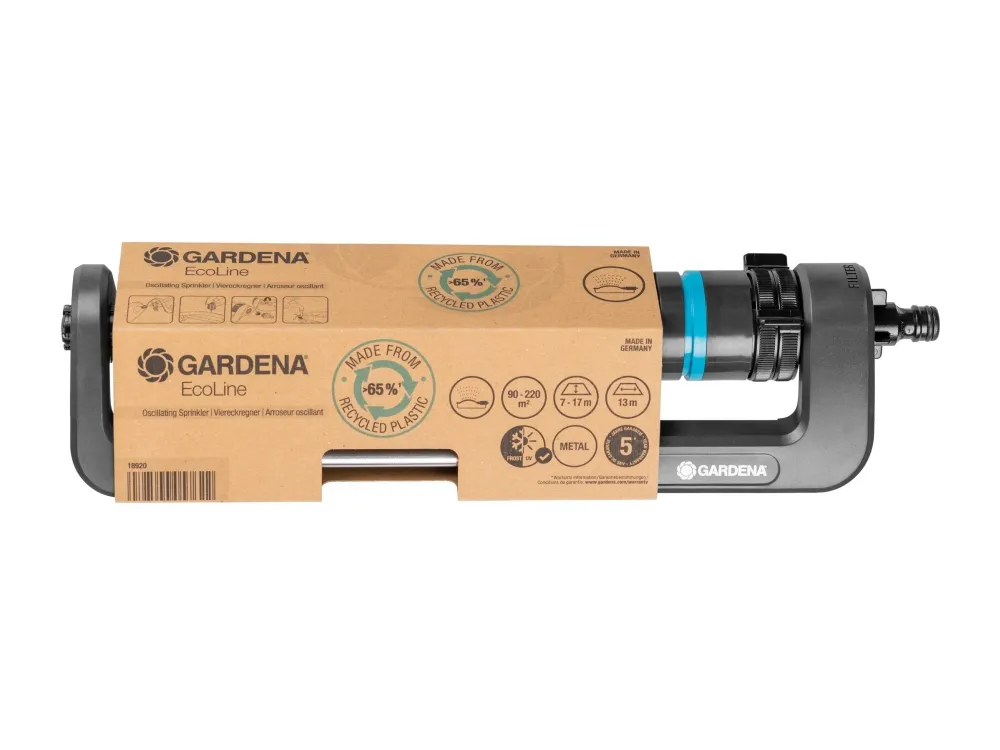 EcoLine oscillerende sprinkler fra GARDENA vanner rektangulære plener eller bed på mellom 90 og 220 m² jevnt og presist - uten sølepytter. Den er designet med plast som er laget av mer enn 65 prosent resirkulert materiale fra vanlig husholdningsavfall, og er en bærekraftig løsning for vanning av plenen på varme sommerdager. Sprinklerens aluminiumsrør er laget av mer enn 25 prosent resirkulert materiale. De bearbeidede metallelementene forsterker sprinklerens robusthet og holdbarhet, samtidig som de ser stilige ut. Det er bare å plassere sprinkleren på plenen med en slange koblet til vannkranen og slå på vannet. Deretter kan du enkelt justere rekkevidden til sprinkleren mellom 7 og 17 meter. Den kvadratiske EcoLine-sprinkleren når en maksimal bredde på 13 meter. Enten du vil vanne et lite bed eller hele plenen - med den firkantede sprinkleren kan du gjøre begge deler. Sprinkleren er UV- og frostbeskyttet, slik at du kan la den stå ute hele året. Et annet høydepunkt som underbygger produktets holdbarhet, er sprinklerens smarte og raske rengjøringsverktøy: Et innebygd, avtakbart filter forhindrer at smusspartikler tetter sprinkleren. Du kan fjerne det selv og ganske enkelt rengjøre det under vannkranen. Hvis det samler seg kalk på dysene, kan du bruke den medfølgende rengjøringsnålen til raskt å rense hullene. Et naturlig valg for lidenskapelige gartnere. Bærekraftig produsert. Estetisk utformet. Holdbar konstruksjon.