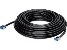 LANCOM CAT 6a network cable is designed for outdoor use, providing robust connectivity with a focus on durability and performance. Engineered with S/FTP technology, this cable features eight wires organized into four pairs, ensuring reliable data transmission for various networking applications. The low-density polyethylene (LDPE) jacket enhances UV resistance, making it suitable for installation in exposed environments, while the strain relief feature aids in prolonging the cable's lifespan in harsh conditions. Additionally, it supports Power over Ethernet (PoE), facilitating power delivery along with data for convenience in diverse setups. Operating efficiently across a wide temperature range from -40°C to 70°C, the cable is crafted to endure extreme conditions, making it a dependable choice for both commercial and residential installations. With male RJ-45 connectors on both ends and a thoughtful design that ensures ease of handling and installation, this cable meets the demands of modern networking needs.