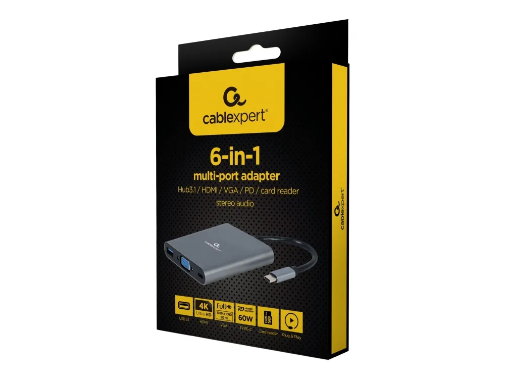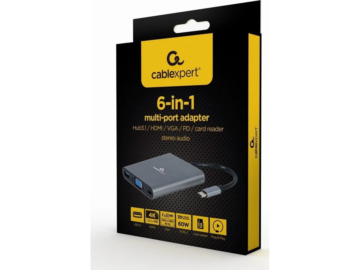 The Gembird Cablexpert A-CM-COMBO6-01 is a versatile USB-C 3.1 docking station that provides seamless connectivity for a variety of devices. With a length of 15 cm and integrated form factor, this docking station is designed for convenience and ease of use. Equipped with multiple interfaces - including audio, video, and audio/video connections - it supports resolutions up to 4K at 60 Hz through HDMI, delivering high-quality visual output for presentations or entertainment.