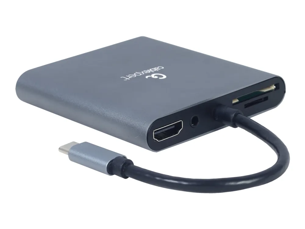 Featuring USB Power Delivery at 60 W, the A-CM-COMBO6-01 enables fast charging for compatible devices while simultaneously allowing data transfer. With support for both SD and microSD memory cards, this docking station enhances storage options. The sturdy metal housing provides durability and ensures a reliable connection. Compliant with Plug-and-Play standards, users can quickly set up their devices without complex installations.