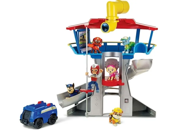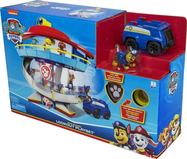 Keep a look-out for danger with the Paw Patrol Look-Out Playset! Watch Chase take the elevator to the top of the Paw Patrol Look-out and use the real working periscope to search the surrounding area for danger. The Look-Out Playset is a playground for your child’s imagination as they recreate incredible scenes from the Nickelodeon TV show! When danger is spotted, race to the rescue by hitting the Paw Patrol badge to sound the alarm! Send Chase down the wrap around slide and straight into his SUV. No job is too big and no pup is too small and now you can save the day with the incredible Paw Patrol Look-out Playset! In the dark of night, in the light of day, the Paw Patrol will serve Adventure Bay!