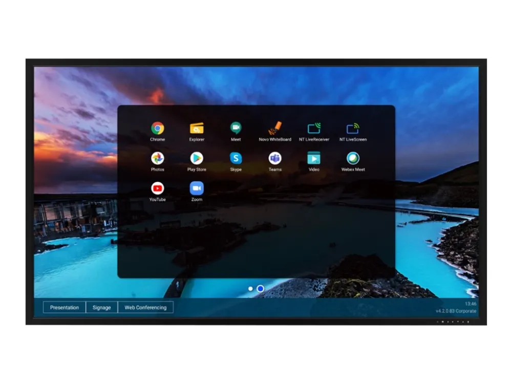 NovoDisplay innovative solution combines a 4K Panel Display, wireless collaboration and digital signage functionalities.