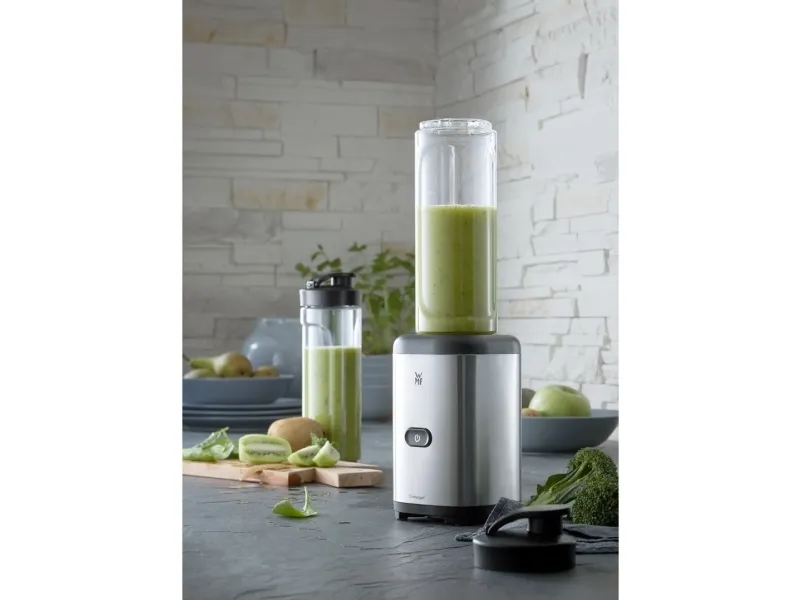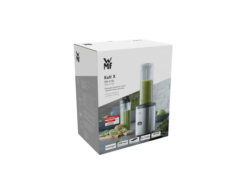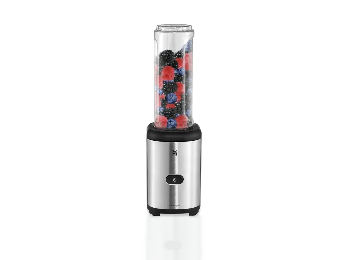Compact and practical. The Mix & Go is a must for all smoothie fans. With its 300 W power output and the high quality 4-wing stainless steel blade, it purées and blends a wide range of smoothies and fruit shakes - even with ice. The blender container is especially practical and has a beverage lid to transform it into the perfect companion for when you're on the go.
