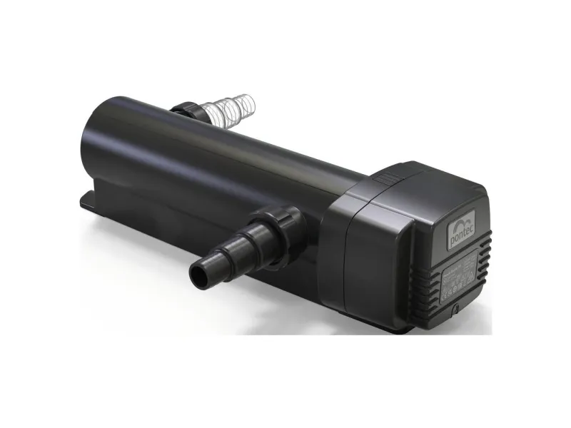 Pontec UVC-klaringsenhed Pondotronic UVC 11 Uklare udsigter i dammen? Så er det tid til at opgradere Pontec UVC-klaringstank Pondotronic UVC 11. Egnet til damme med op til 11.000 liter (uden fiskebestand), fjerner kraften fra 11-watt-UVC-lampen grønne alger og reducerer skadelige kim og bakterier. Resultatet er klart vand. Tilslut blot klaringeren mellem dampumpen og damfilteret. PondoTronic kan anvendes universelt til mange damfiltermodeller. Til kontrol af lyskilden er apparatet udstyret med en optisk funktionskontrol. Du kan vælge Pontec UVC-klaringstank PondoTronic UVC 7 til lavere UVC-behov.