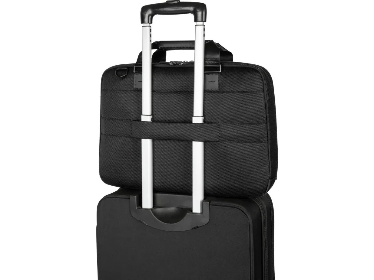 The Targus Mobile Elite briefcase is a solution for transporting your notebook and tablet devices securely and stylishly. Designed specifically for the modern professional, this notebook carrying case combines functionality with an elegant design. Made from durable, fade-resistant, and stain-resistant nylon, it ensures your electronics are protected in a case that maintains its appearance over time. The inclusion of the SafePort Sling Protection System provides protection against drops and bumps, ensuring your devices remain safe in transit. With multiple carrying options, including padded shoulder straps, top carrying handles, and a trolley strap, it offers versatility and comfort for all your travel needs. Additionally, the lockable zipper adds an extra layer of security for your valuable devices. Whether you're commuting to work or traveling for business, the Targus Mobile Elite briefcase is the perfect companion for your 15.6" to 16" notebook.