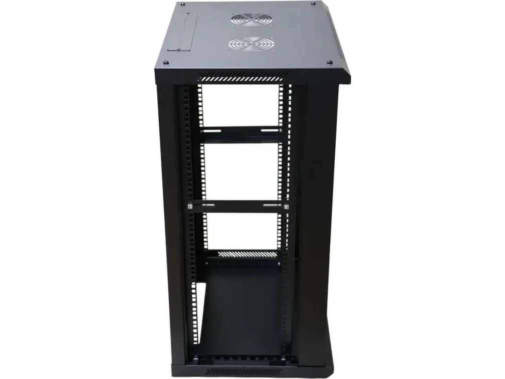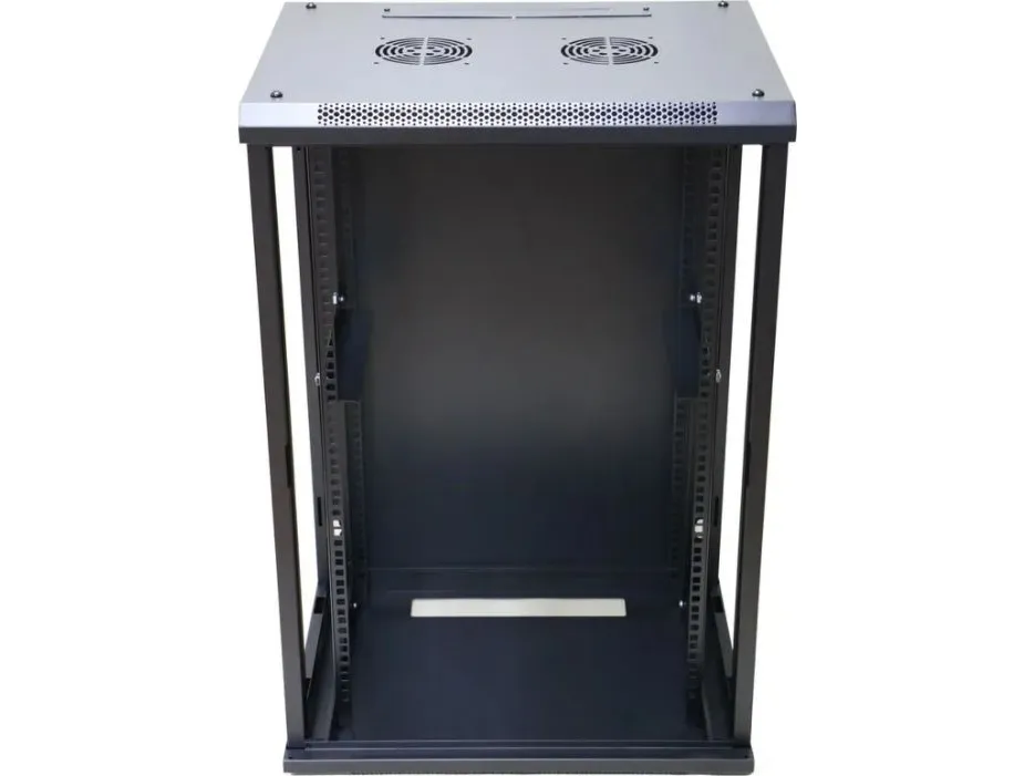 The BATNA Extralink 600 x 600 mm wall-mountable rack cabinet is designed with versatility and functionality in mind. With a height of 18 rack units and a 19" rack size, it accommodates various equipment, ensuring an organized and secure setup. The tempered-glass front door provides a stylish look while allowing for easy visibility of your equipment, and the removable side panels simplify installation and maintenance. The keyed lock enhances security, safeguarding valuable components inside the cabinet.