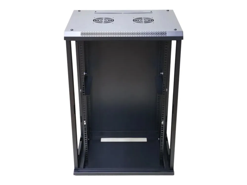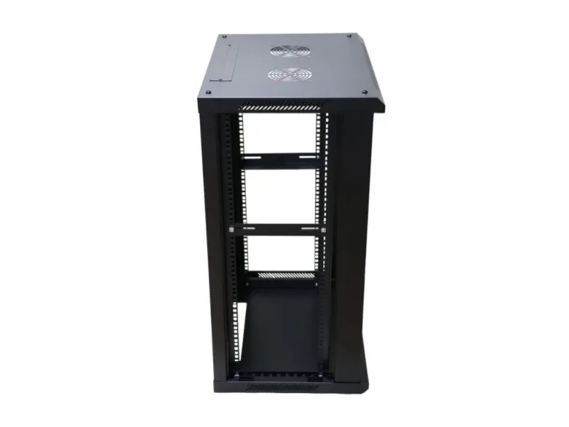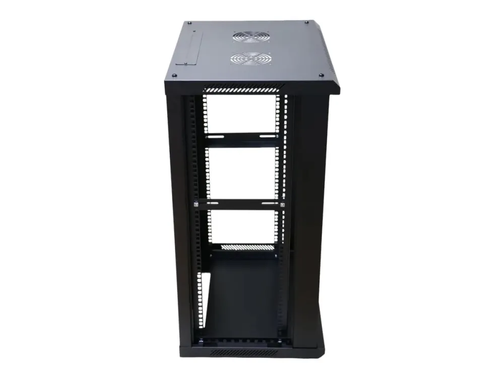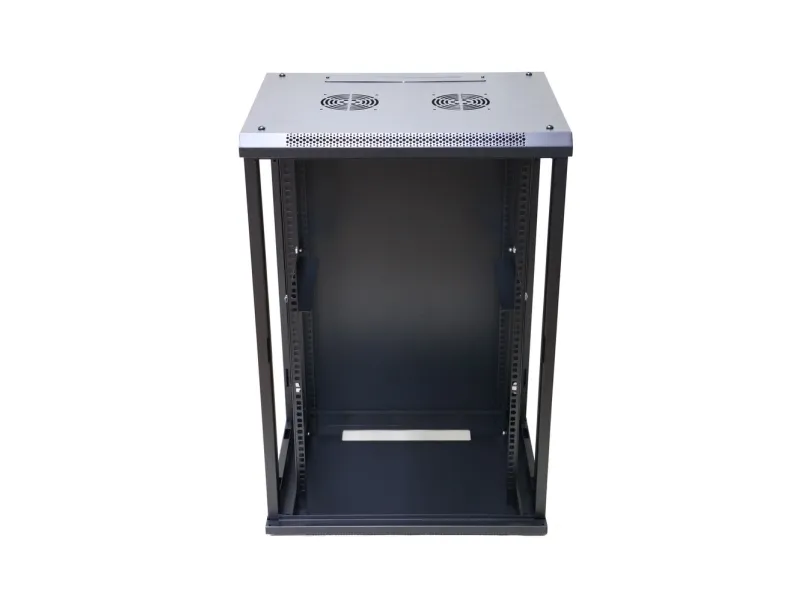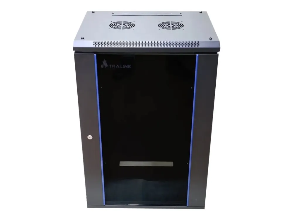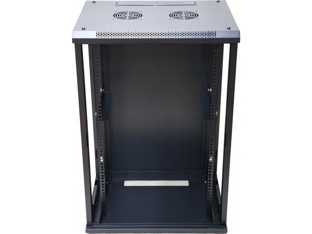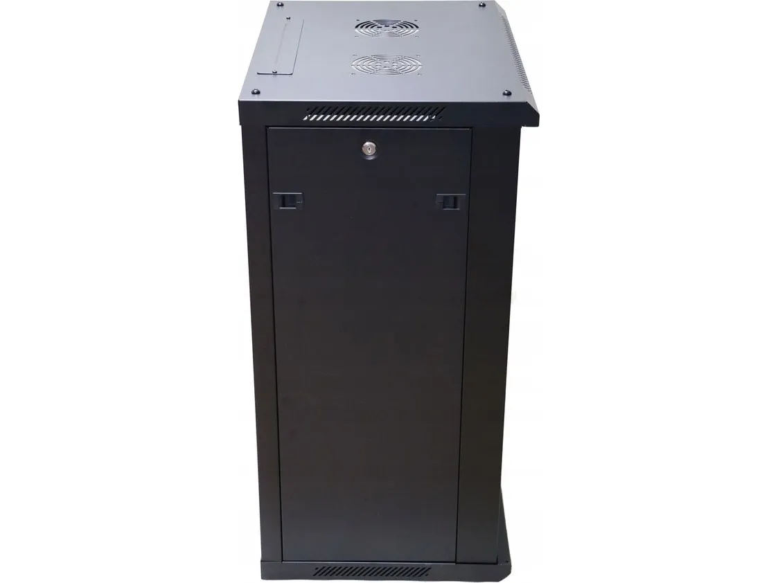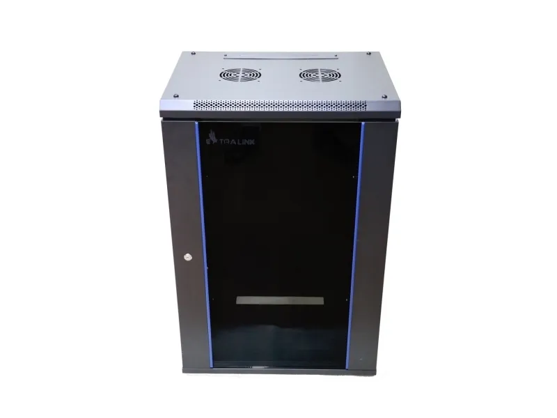 The Extralink rack cabinet is designed for wall mounting in offices, network server rooms and CCTV control rooms. The cabinet's walls are made of cold-rolled steel sheet, while the front doors are made of tempered glass with the possibility of opening to the left or right side.