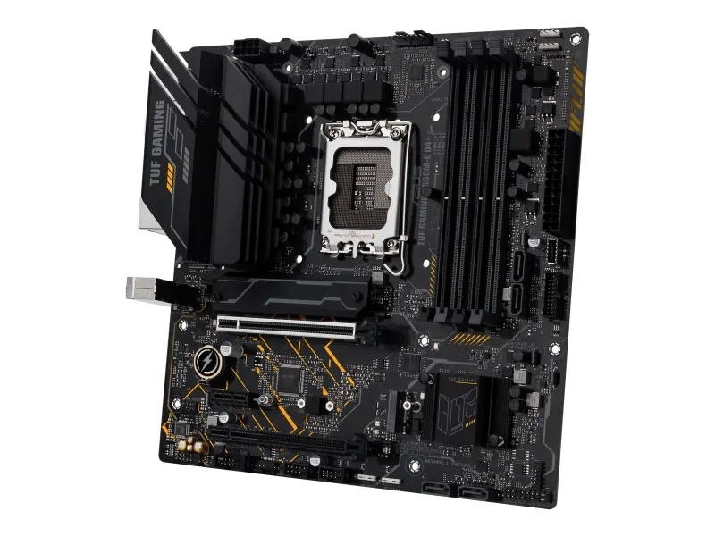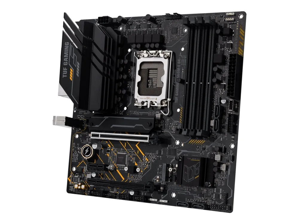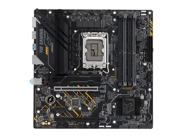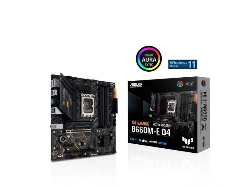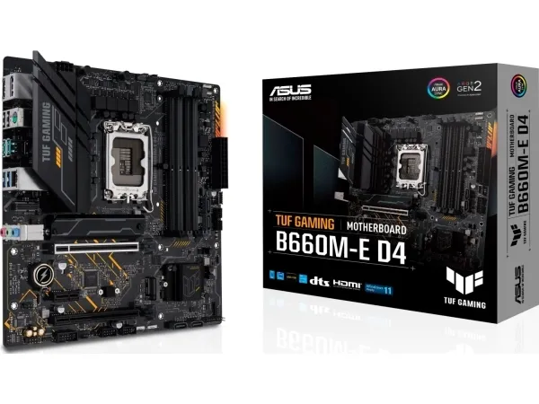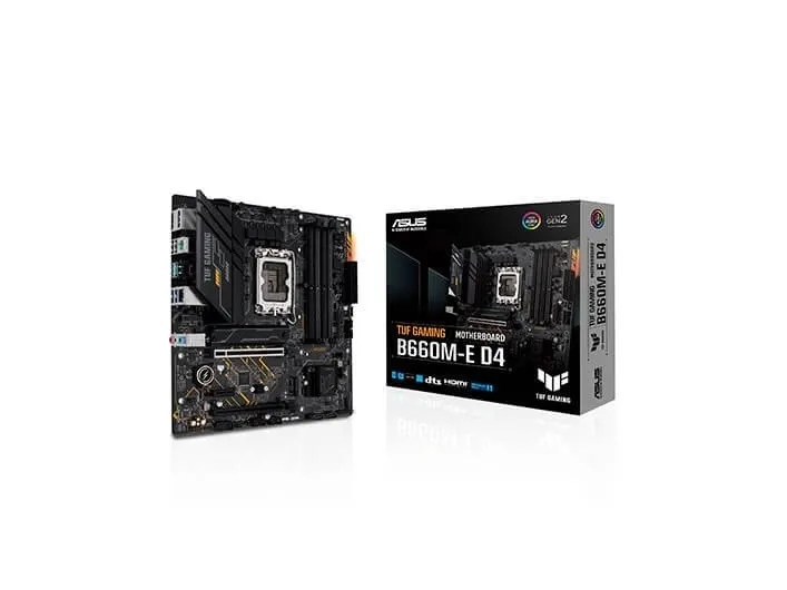 ASUS TUF GAMING B660M-E D4 takes all the essential elements of the latest Intel processors and combines them with game-ready features and proven durability. Engineered with military-grade components, an upgraded power solution and a comprehensive cooling system, this motherboard offers rock-solid and stable performance for marathon gaming. Aesthetically, TUF GAMING B660M-E D4 sports the new TUF Gaming logo and incorporates simple geometric design elements to reflect the dependability and stability that defines the TUF Gaming series.