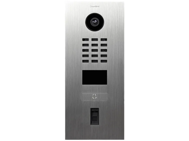 IP Video Door Station D2101FV Fingerprint 50, stainless steel V2A, brushed, 1 call button incl. stainless steel plate with bell symbol, DoorBird Fingerprint Reader Module 50 (surface-/ flush-mounting housing sold separately)