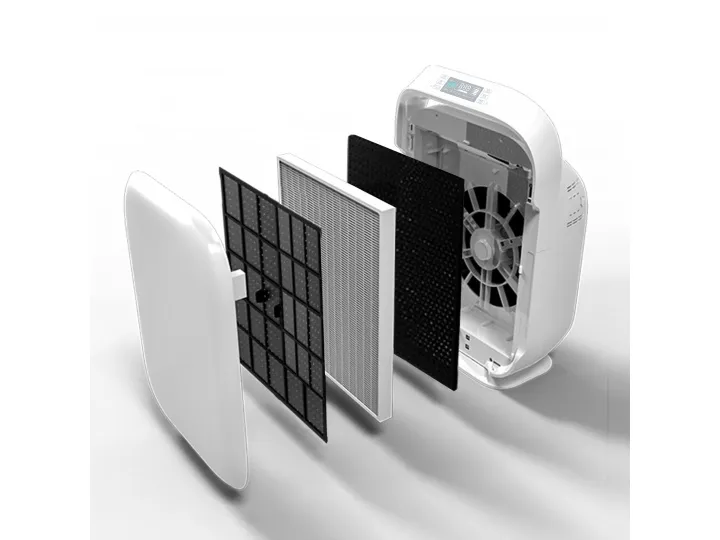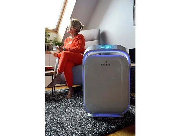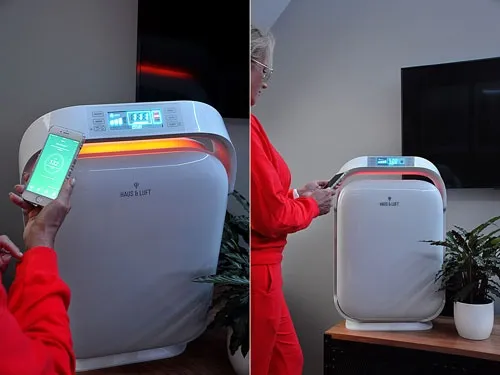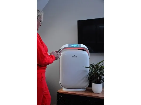 - Prefilter - pre-filtering of air to remove dust, allergens, hair and fur from the air. - Activated carbon filter - eliminates formaldehyde, benzene, harmful airborne gases and bad odours. - HEPA13 filter – main air filter which removes remaining dust, pollens, allergens, fungi spores and smoke. - UV-C lamp – biological treatment of air by killing viruses, bacteria and microbes. - Ioniser – produces negative ions that reduce effects of positive ions from electronic devices such as TV sets or personal computers. It improves the air, lending it a quality of the sea breeze or of air after a rainstorm.