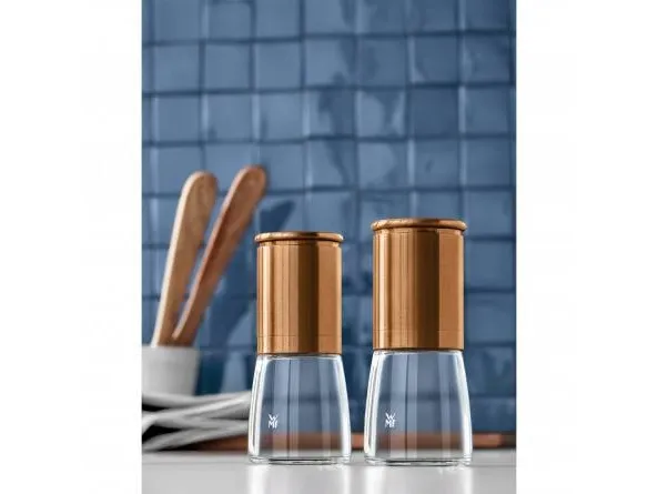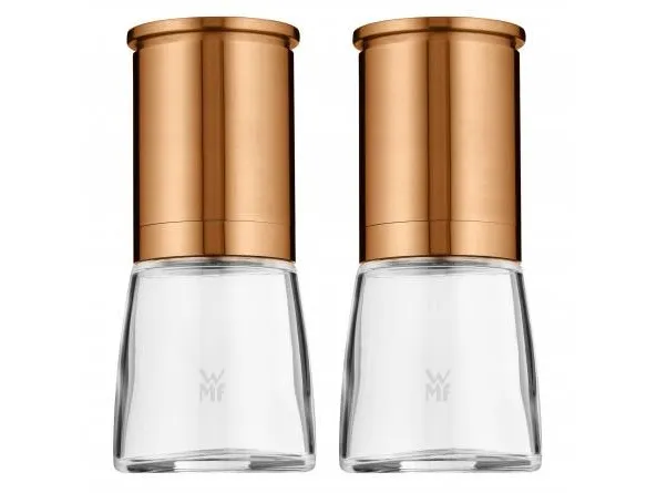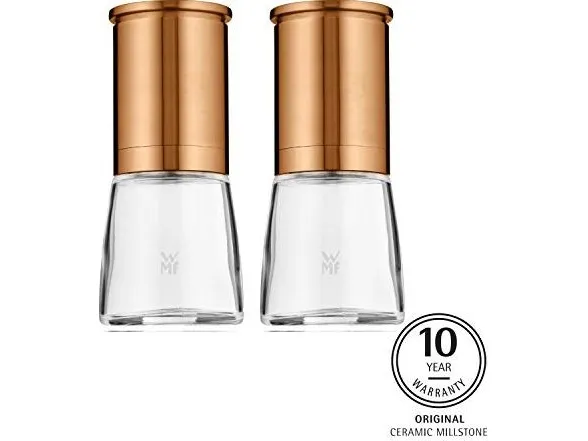 Grind salt and pepper upside down: in the Ceramill de Luxe spice mills the grinding mechanism is at the top and leaves no traces on the table. An aroma lid protects the grinder and seals the aroma. When you are ready to grind simply remove the lid, hold the mill upside down by the stainless steel edge, twist the glass, and the ground powder comes out. Made of stainless steel and glass, this spice mill is equipped with an original Ceramill ceramic burr grinder, which can be steplessly adjusted. WMF provides a ten-year guarantee on the grinder; it is corrosion and abrasion-free. The 14cm high spice mill can be taken apart, and the glass container is dishwasher safe.