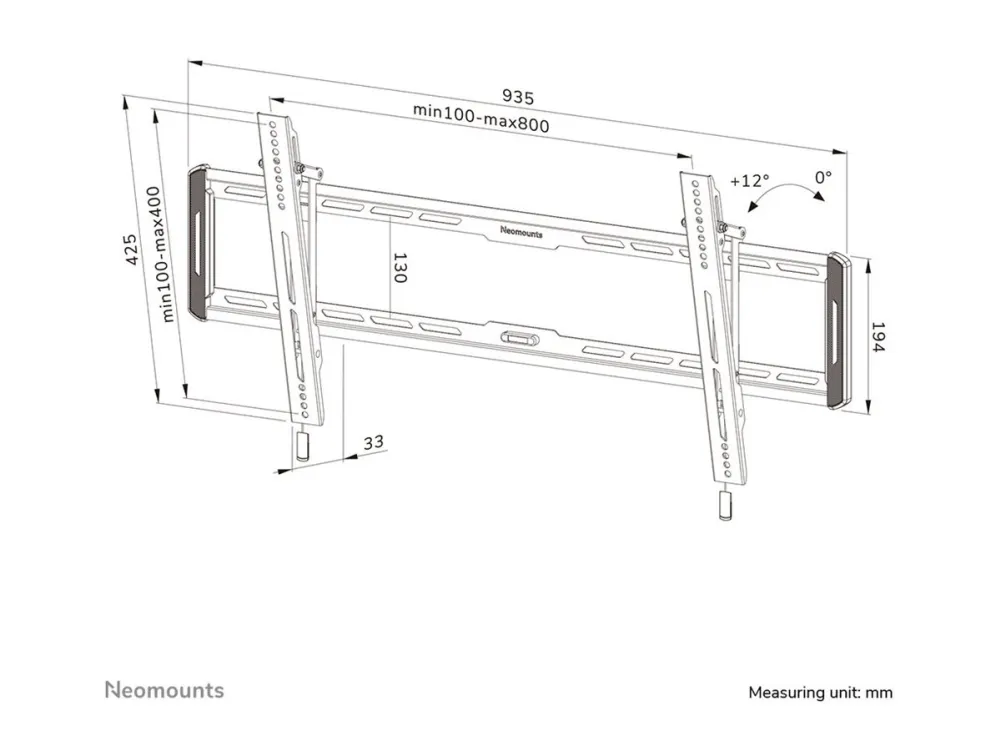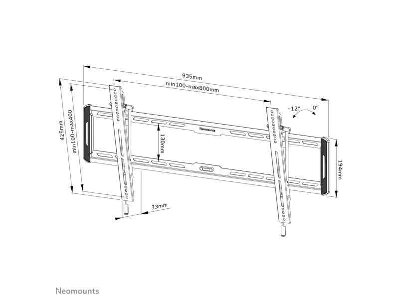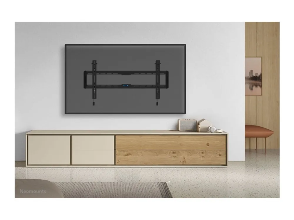 The Neomounts WL35-550BL18 is a tiltable wall mount for flat screens up to 86" with a maximum weight capacity of 70 kg. The versatile tilt (12°) technology allows you to create the optimum viewing angle. The WL35-550BL18 has a depth of 3,3 cm and is suitable for screens that meet VESA hole pattern 100x100 to 800x400 mm. The mount features a nifty magnetic pull and release system that allows you to attach the TV in a wink of an eye and secure the TV in safe and solid manner. Afterwards, the pull & release straps can be easily hidden behind the screen by clicking the magnet to the mount. The integrated spirit level assures easy installation of the mount.