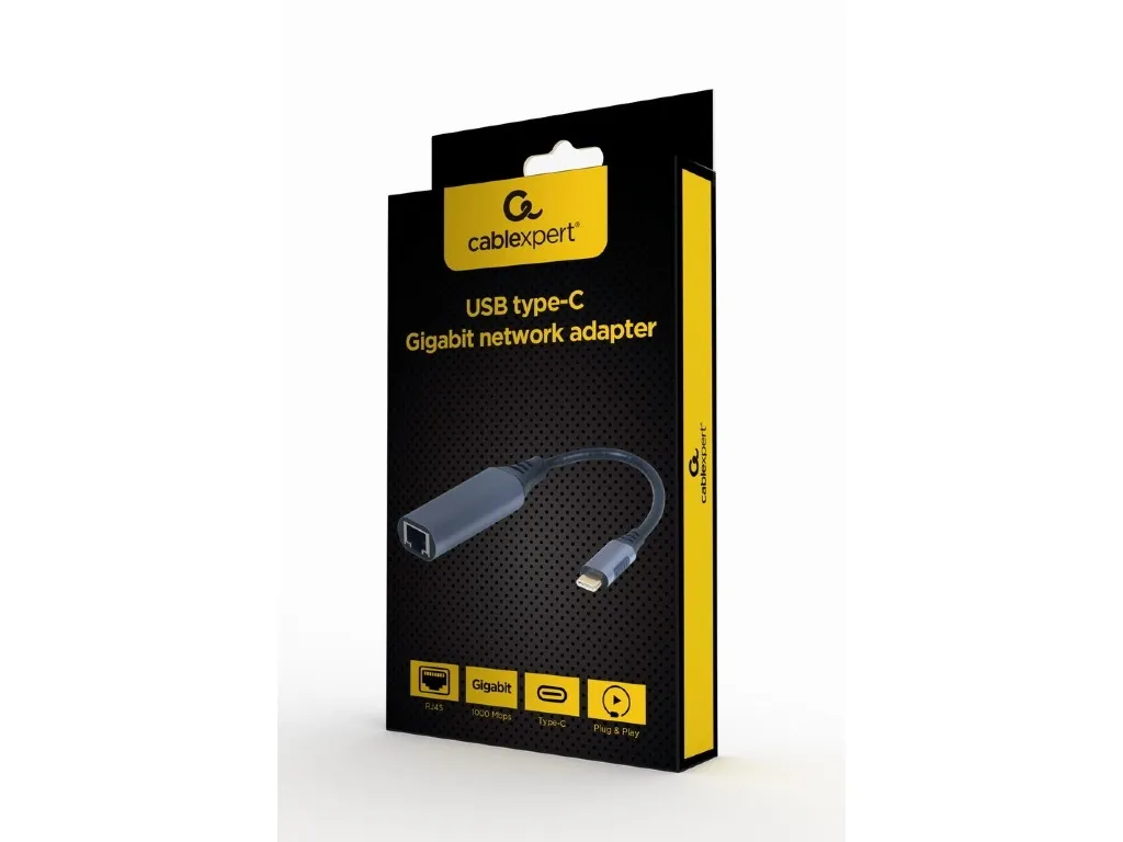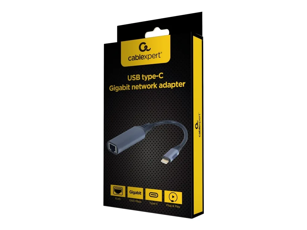 The Gembird Cablexpert A-USB3C-LAN-01 is a versatile USB-C network adapter designed to enhance connectivity with ease. This compact 15 cm integrated cable enables a reliable wired connection through its RJ-45 connector, supporting data transfer speeds of up to 1 Gbps. Ideal for home and office environments, this adapter ensures efficient networking capabilities while being compliant with various standards, promoting seamless Plug-and-Play functionality. The sturdy metal housing provides a durable finish and stability during operation. With support for multiple data link protocols such as Ethernet, Fast Ethernet, and Gigabit Ethernet, users can experience consistent and high-speed data performance. This network adapter is perfect for those seeking a compact solution for their USB-C devices, combining convenience and performance without sacrificing quality.