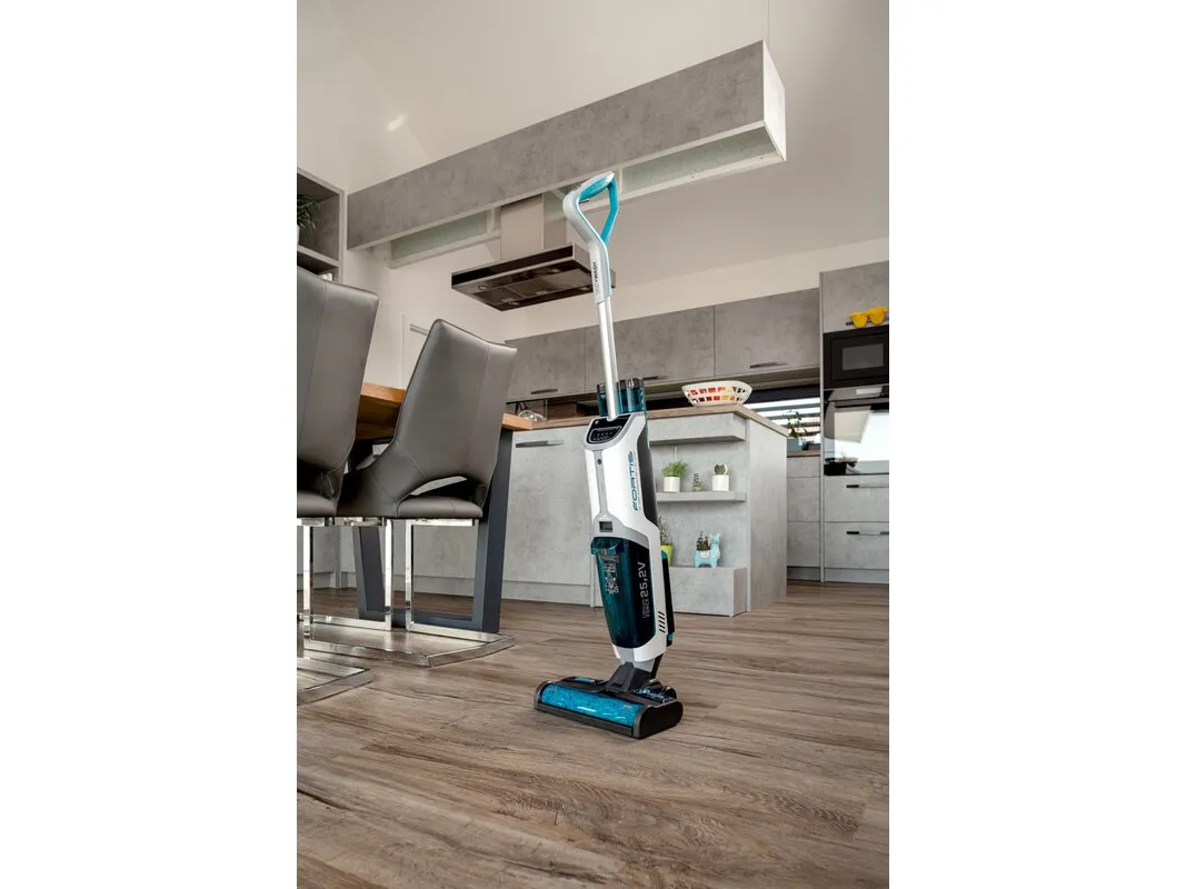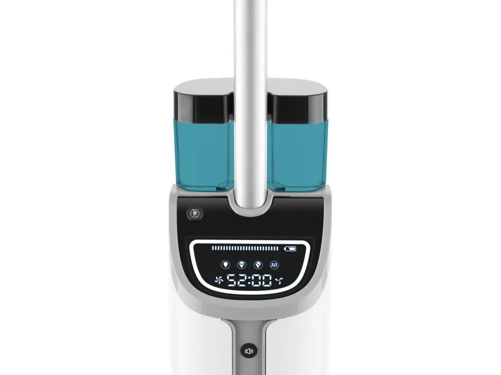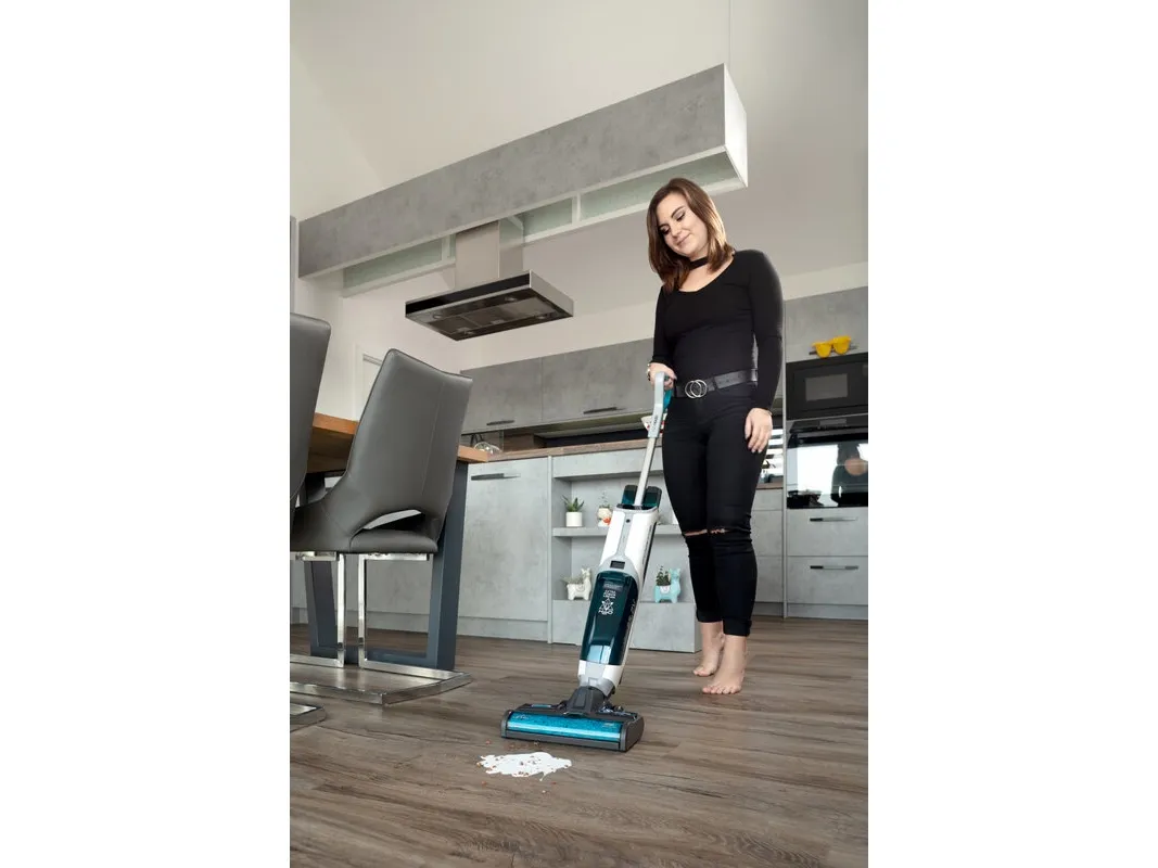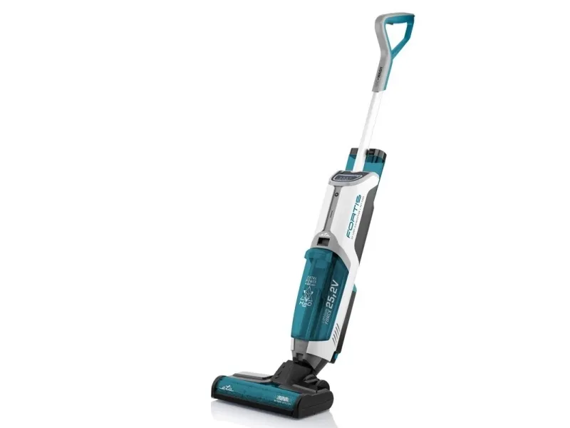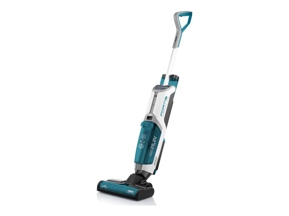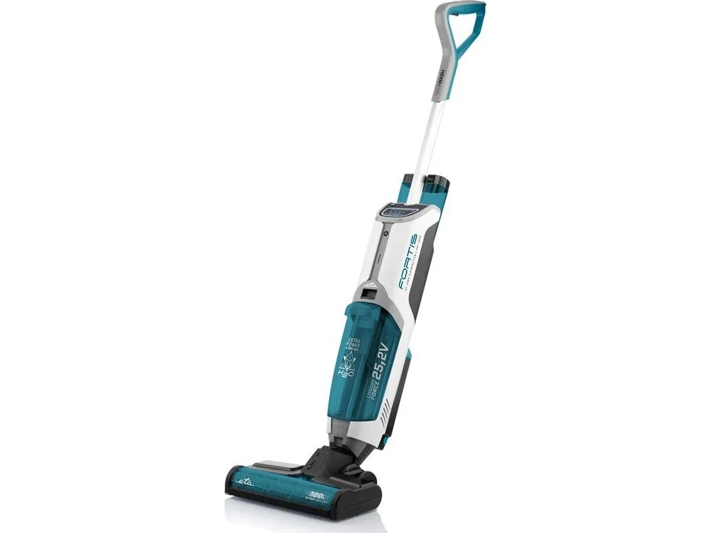 The ETA Fortis 7224 90000 is a versatile upright floor cleaner designed for both dry and wet cleaning methods. Its bagless dust collection system features a HEPA filter to keep indoor air clean. With a two-tank system for clear and dirty water, this cleaner ensures effective cleaning performance. An adjustable suction feature allows users to tackle various surfaces, while the built-in UV lamp aids in sanitizing floors. The ergonomic handle and LED display make operation easy, enhancing the overall cleaning experience. Equipped with a self-cleaning cycle, this vacuum is perfect for removing pet hair and maintaining cleanliness effortlessly.
