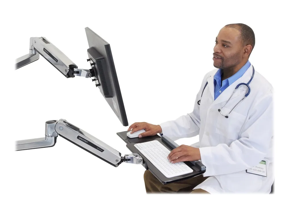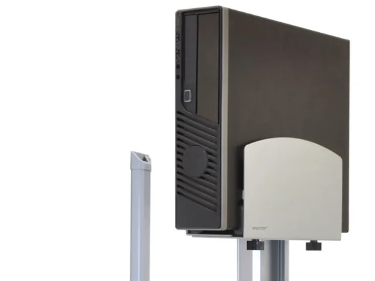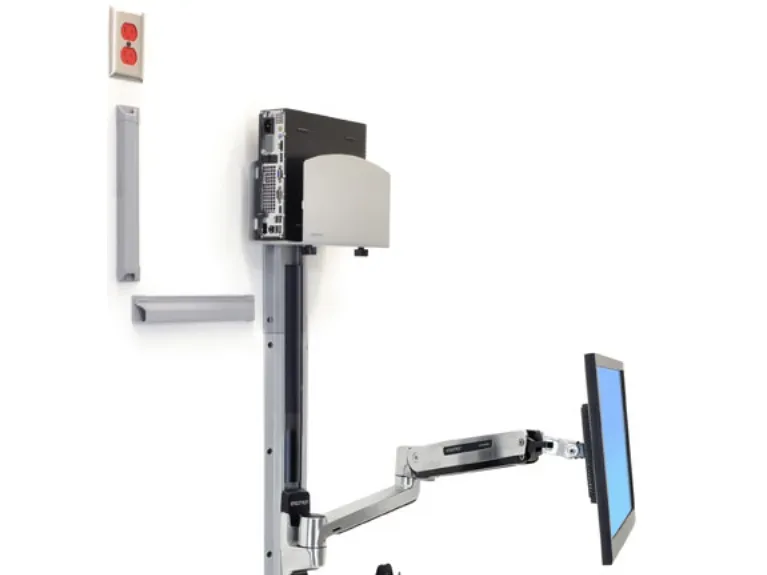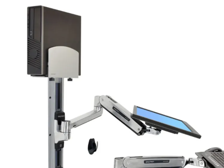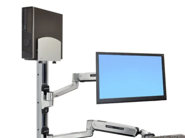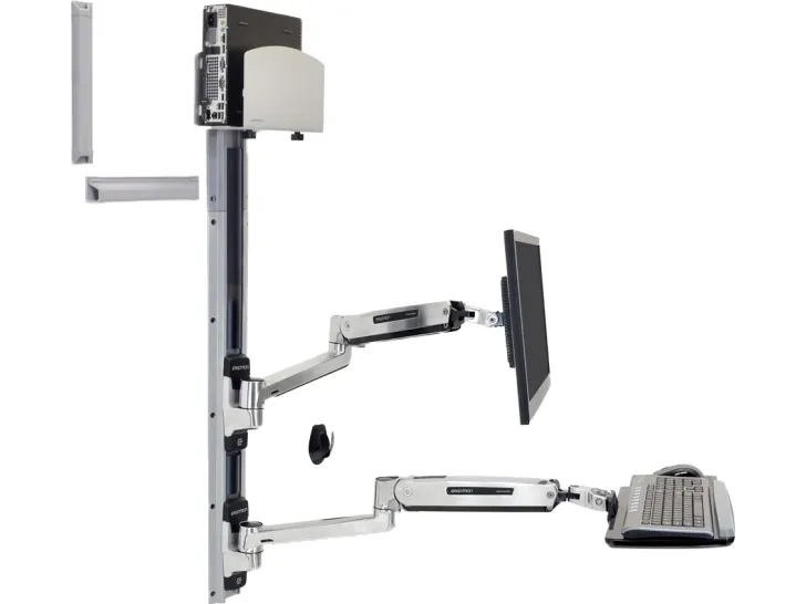With medium silver CPU holder. This is a complete solution that accommodates an LCD, keyboard and CPU, creating a sit-stand computer workstation. It is perfect for space-constrained areas: simply fold the keyboard and LCD tight against the wall when not in use.