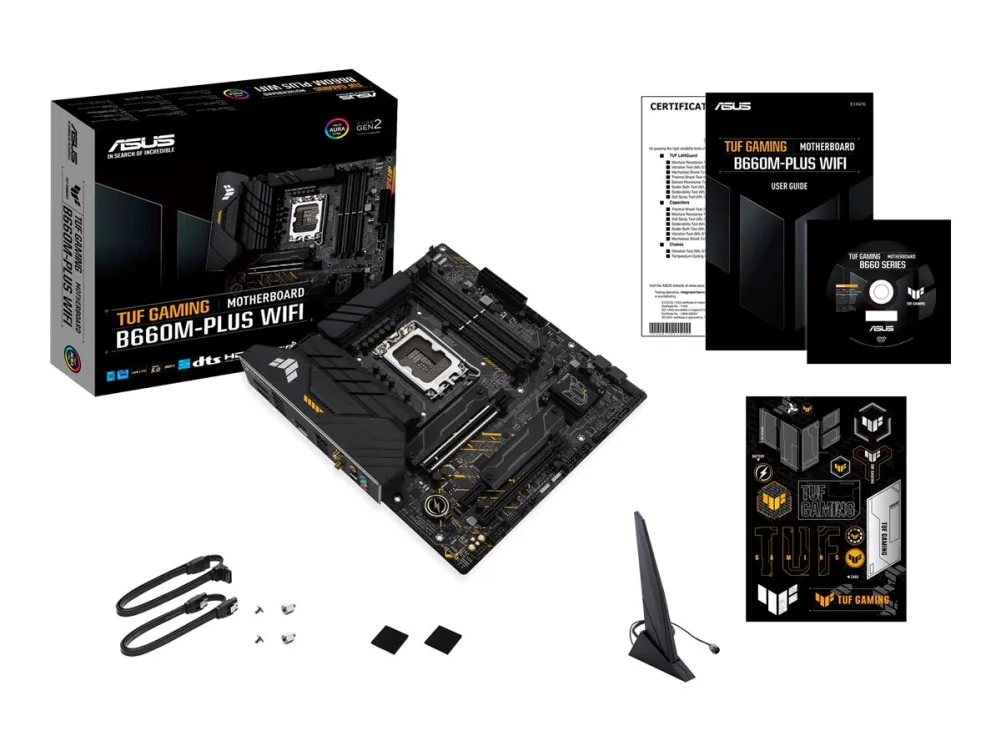 ASUS TUF GAMING B660M-PLUS WIFI - Hovedkort - micro ATX - LGA1700-sokkel - B660 Chipset - USB-C Gen 2x2, USB 3.2 Gen 1, USB 3.2 Gen 2, USB-C Gen1 - 2.5 Gigabit LAN, Wi-Fi 6, Bluetooth - innbygd grafikk (CPU kreves) - HD-lyd (8-kanalers)