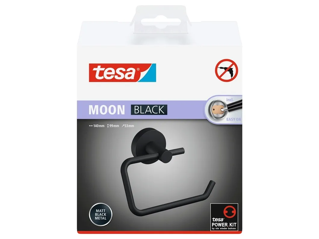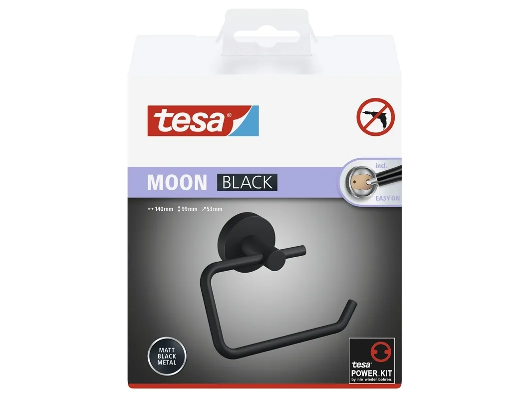 tesa® MOON BLACK toiletpapirholder, mat sort - rulleholder uden låg til badeværelser i Industrial Style og moderne badeværelser