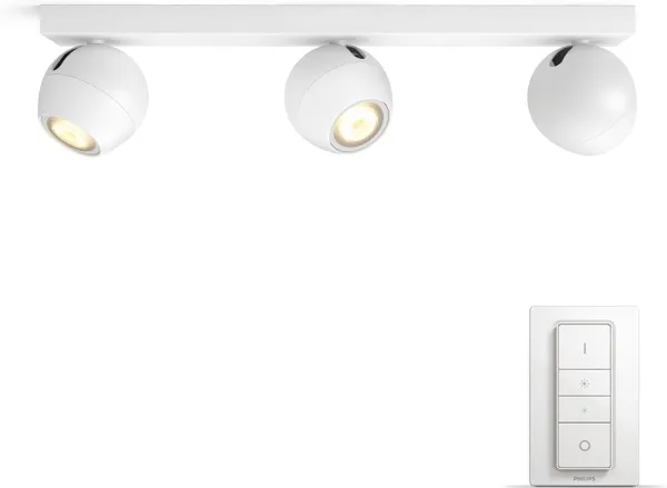 Philips Hue White Ambiance Buckram-spottene leveres med en trådløs dimmer og en White Ambiance GU10 LED-lyspære som hjelper deg med å slappe av, lese, konsentrere deg og få mer energi. Få et naturlig hvitt lys som tilpasser seg de daglige rutinene dine.
