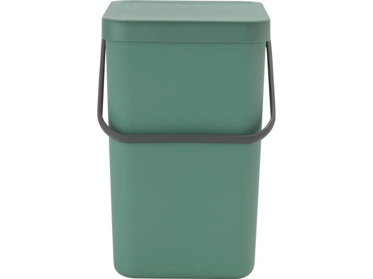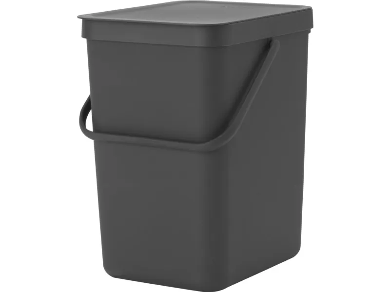 DISCOVER MORE Don't waste any time thinking about waste disposal, organise it once and for all with the Brabantia Sort & Go Recycle Bin 25 litre. A beautiful, space saving solution for separating, collecting & transporting waste. Feed it your empty packaging, bottles, cans and anything else you want sorted. It fits snugly in corners, flat against the wall - you can even hang it. Easy to clean and it has a large handle for easy carrying and emptying too. Happy organising!