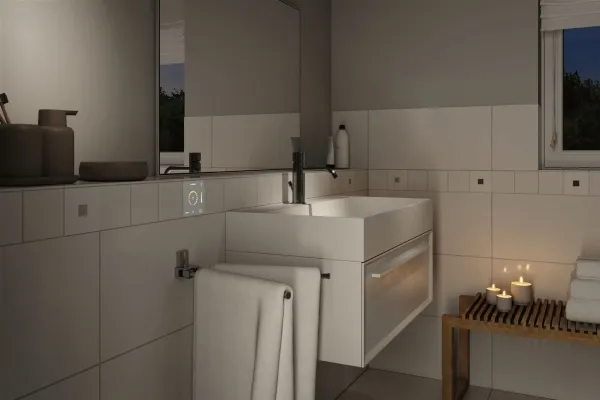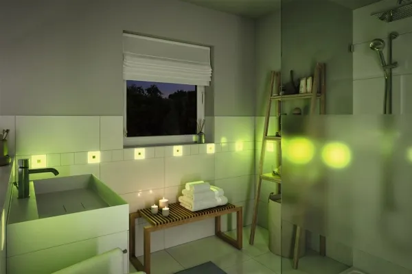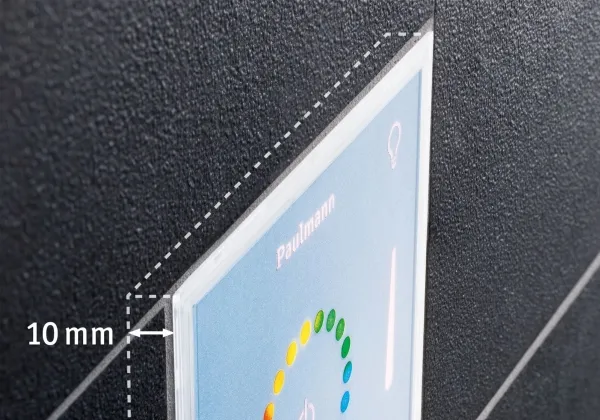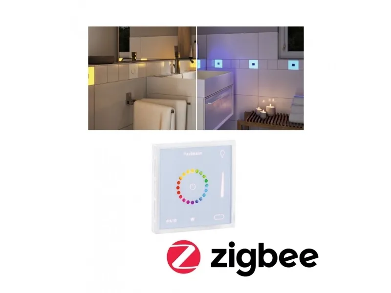 LumiTiles tilbehør Smart Home Zigbee Square touch modul IP44 100x10mm RGBW hvid plast#aluminium Med Touch modul Square kan LumiTiles RGBW LED fliser styres, dæmpes og kobles. Modulet er opbygget i 2 dele af basisplade og styremodul. Basispladen i dimension 10 x 10 cm limes fast med fliselim. Er fliseklæber tørret, indsættes modulet nemt ind i basispladen. Ligesom LED fliser kan modulet nemt udskiftes efterfølgende.