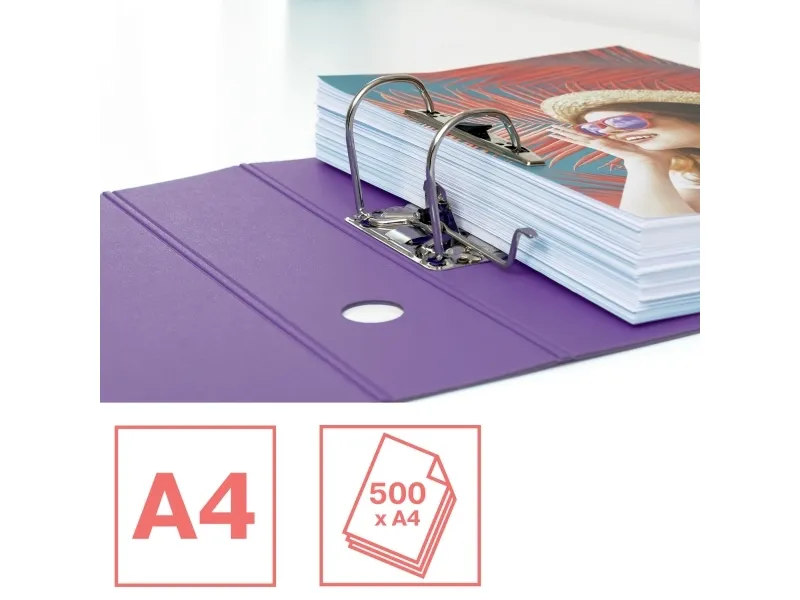 The Esselte Colour'Breeze lever arch file is a versatile and durable solution for all your filing and storage needs. Designed to support A4 (210 x 297 mm) documents, it has a capacity of 500 sheets, making it perfect for managing large volumes of paperwork. The elastic band with button closure and thumbhole feature provide both security and ease of access to your files. Additionally, the self-adhesive spine label allows for easy categorization and quick identification of contents. Constructed from polyfoam, this lever arch file combines a lightweight design with durability, ensuring your documents are protected and organized in a stylish manner.