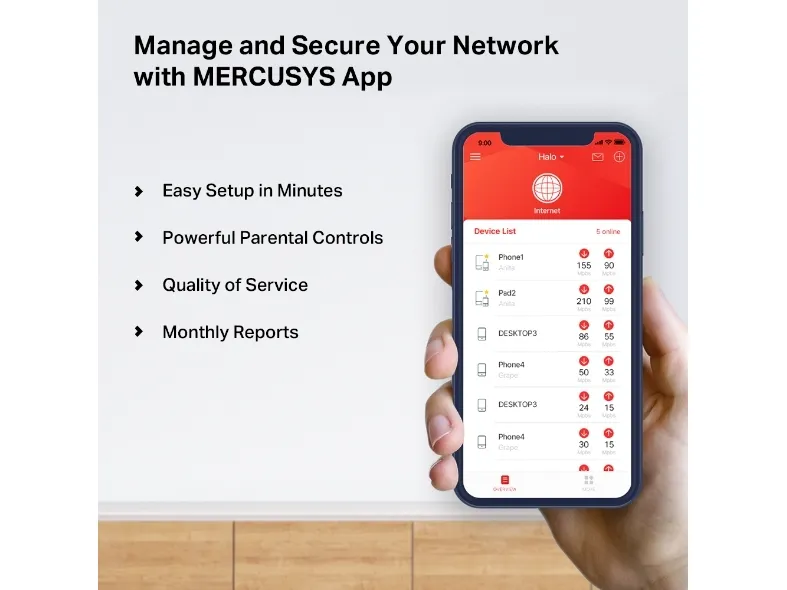 MERCUSYS APP Helps You Setup in Minutes Without understanding technical knowledge or reading installation instructions in advance, just follow the on-screen directions with the MERCUSYS app to set up your mesh network in minutes.
