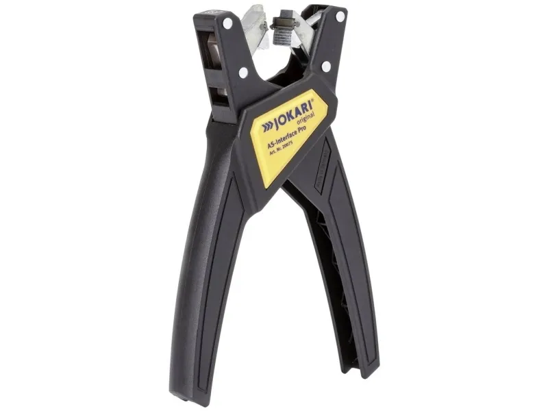 Afisoleringstang AS-Interface Pro Automatisk afisoleringstang til afisolering af AS-interface ledninger med ydre isolering af PUR, TPE eller FR-PVCtilpasset klingekontur på AS-interface-kablet.Kræver ingen indstilling af tangen.Ingen beskadigelse af den indvendige leder muligAfisoleringslængde ubegrænset, med optisk længdeanslag (15 / 18 / 20 mm)Udskiftelige klinger.Testet til kabler fra Geauer&grilller:As-interface BUS 2 x 1,5 mm² TPE 90301, 80479, 90302,80489As-interface BUS 2 x 1,5 mm² FR-PVC 110612, 110614As-interface BUS highflex 2 x 1,5 mm² FR-PUR 21806, 107364, 75244, 107366As-interface BUS Long Distance highflex 2 x 2,5 mm² FR-PUR 143740, 143742