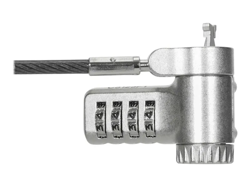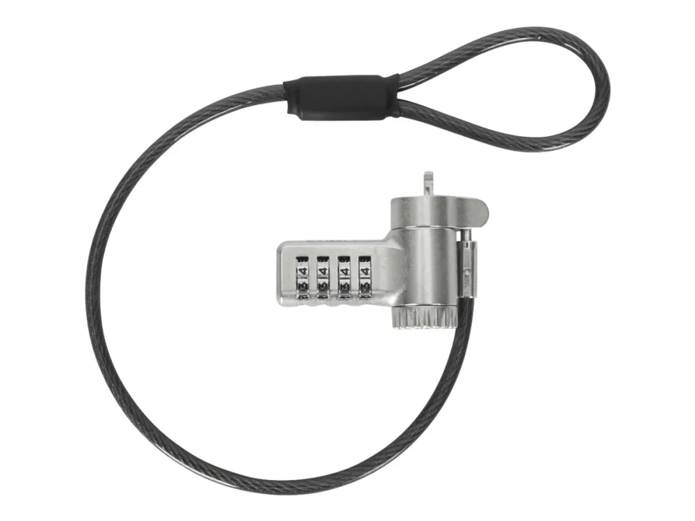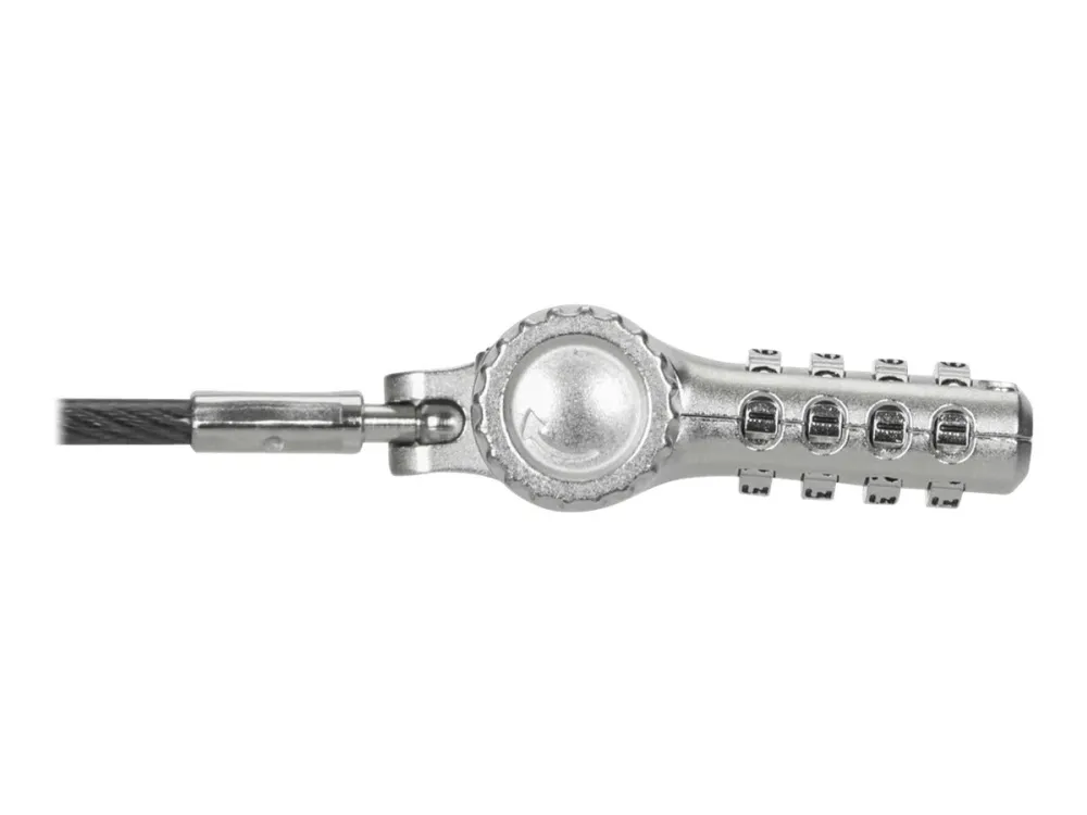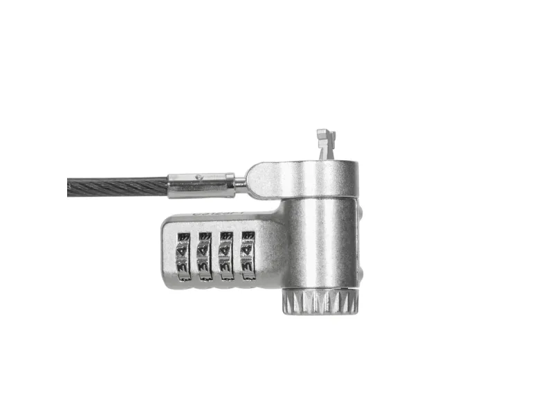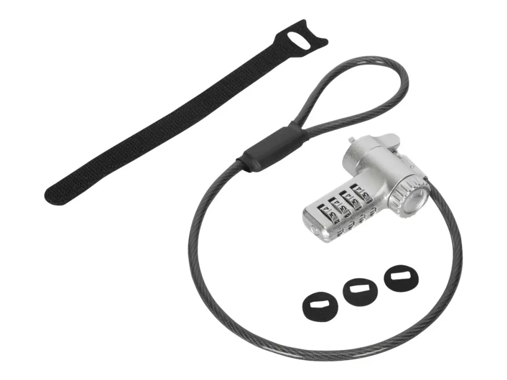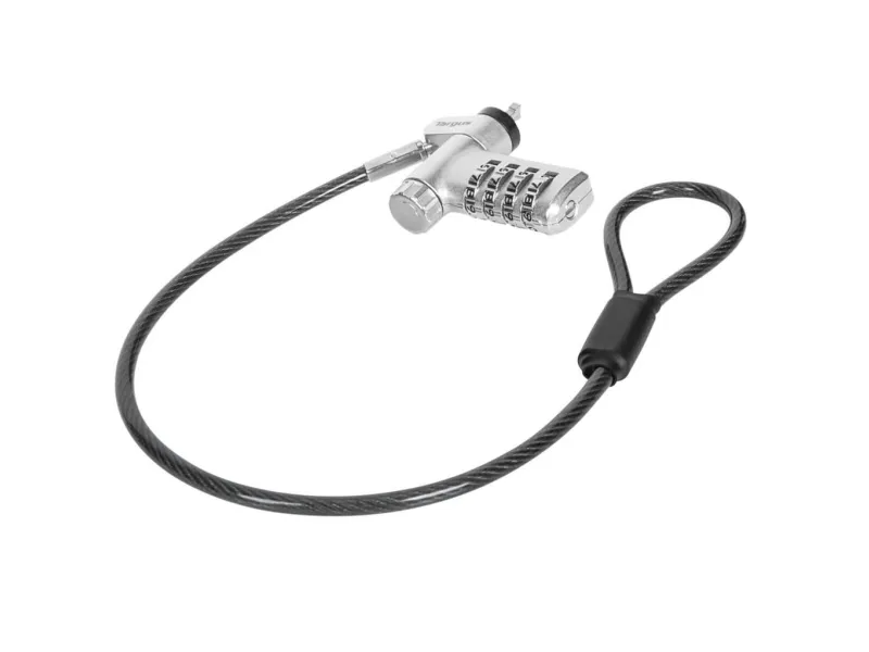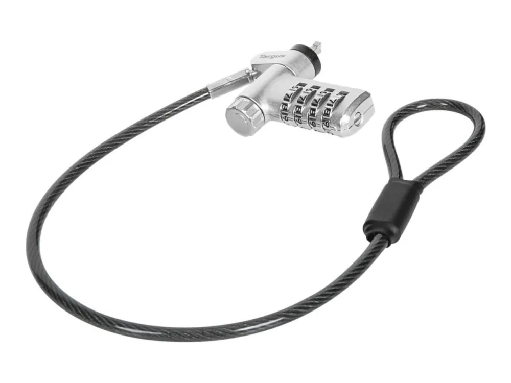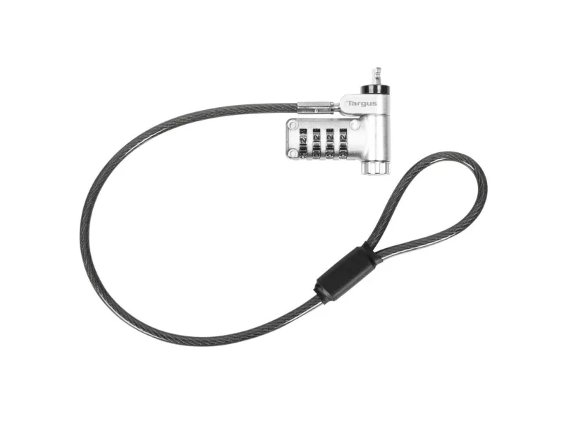 The Targus DEFCON security cable lock is a comprehensive security solution designed to protect your valuable devices. Made from galvanized steel, it features a 360° rotating head and a 4 dial combination lock, offering flexibility and robust protection against theft. Its adaptable lock head ensures compatibility with a wide array of devices, including notebooks and tablet PCs, making it an essential accessory for securing your electronics. Whether at the office, in public spaces, or at home, the Targus DEFCON lock provides peace of mind with its durable and flexible design.