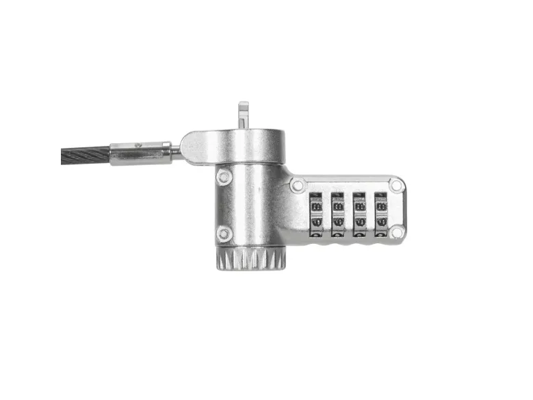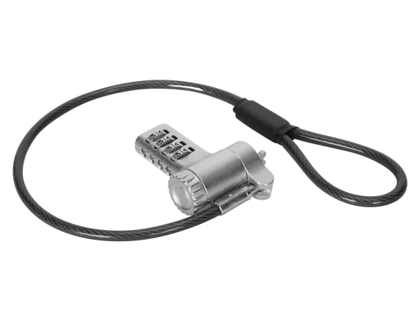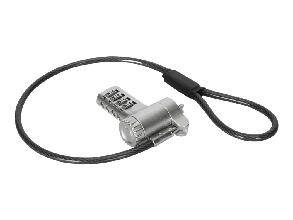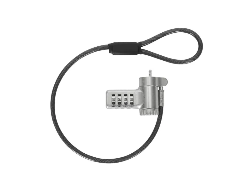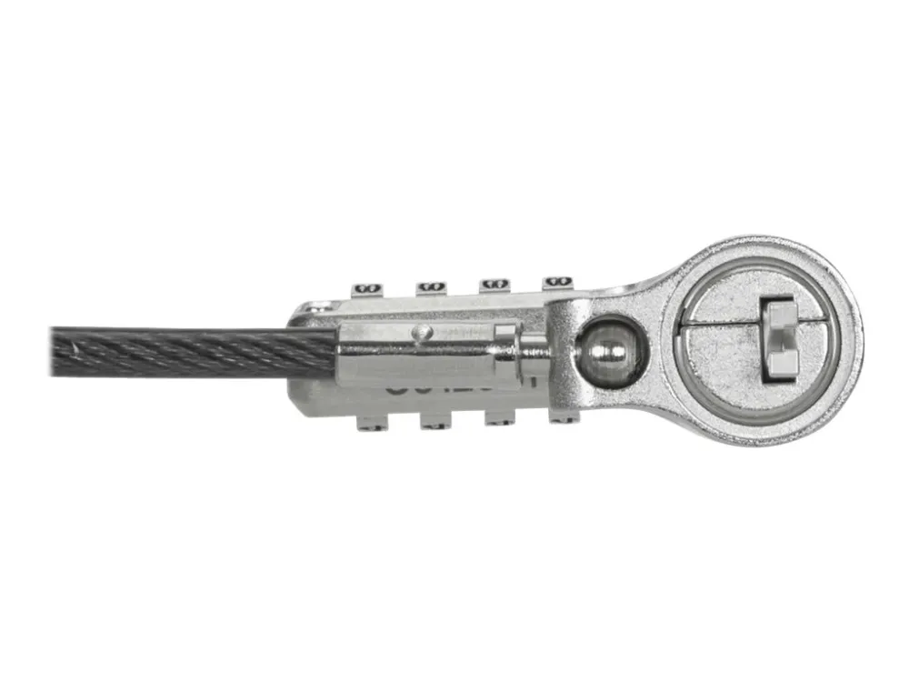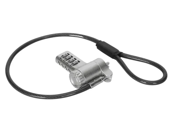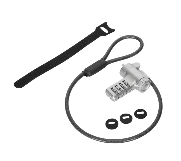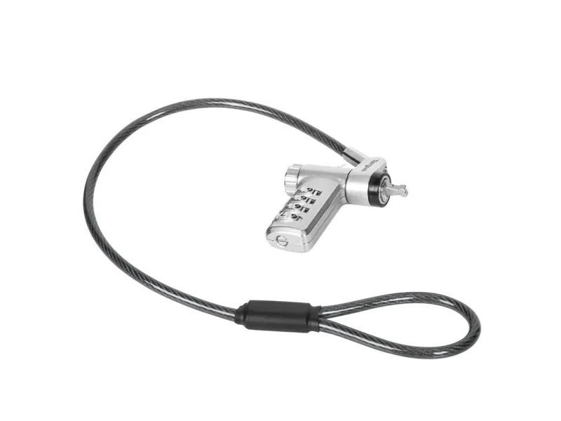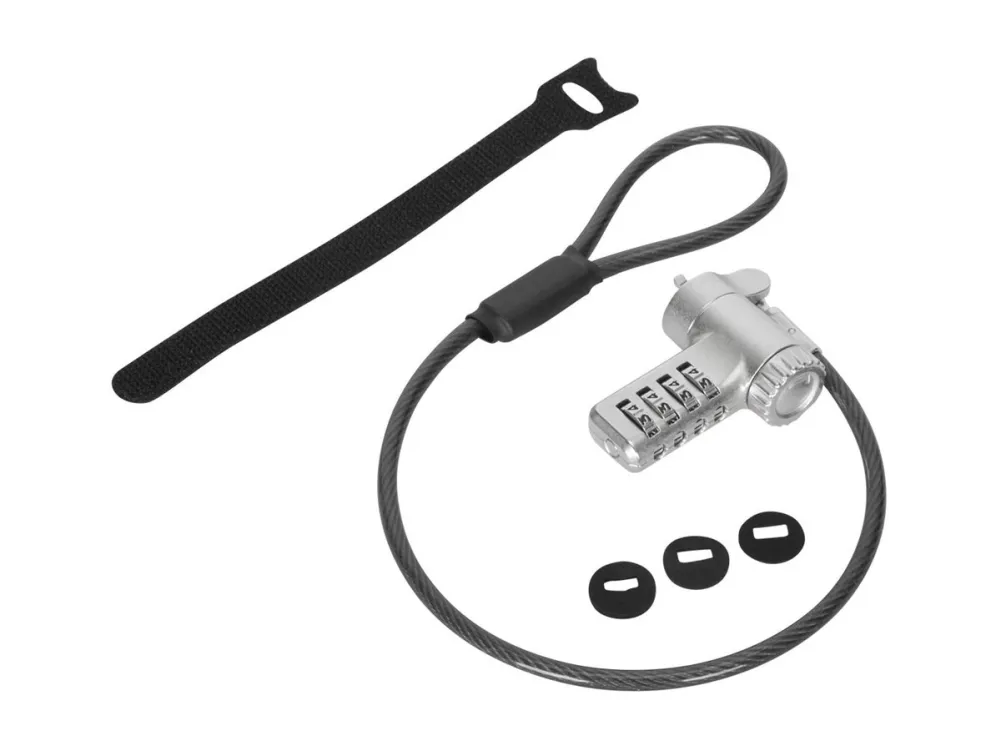The Targus DEFCON security cable lock is a comprehensive security solution designed to protect your valuable devices. Made from galvanized steel, it features a 360° rotating head and a 4 dial combination lock, offering flexibility and robust protection against theft. Its adaptable lock head ensures compatibility with a wide array of devices, including notebooks and tablet PCs, making it an essential accessory for securing your electronics. Whether at the office, in public spaces, or at home, the Targus DEFCON lock provides peace of mind with its durable and flexible design.