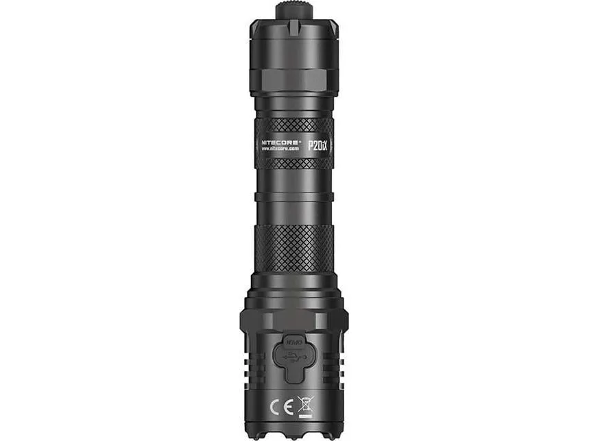 The P20iX is ultra compact and lightweight with a standard tube diameter of 1” (25.4mm) and compatible with NITECORE gun mounts including GM02MH, GM03, GM04 and more. Specially designed for law enforcement, the included compact NTH20 Tactical Holster enables a quick draw of the flashlight with an adjustable stopper on the clip to suit belts of various sizes and compatible with the MOLLE System. It can be used combined with NTR10 Tactical Ring Pro, which can keep a two-handed grip of the firearm while carrying or operating a flashlight, easy for continuous and stable shooting and reloading. Other optional accessories include the TSL10i signal light and F21i fast charging power system. It is all-weather applicable, IP68 rated, 2m submersible and waterproof, and 2m impact resistant.Nitecore P20iX. Flashlight type: Tactical flashlight, Product colour: Black, Housing material: Aluminium. Lamp type: LED, Lamps quantity: 4 lamp(s), Luminous flux: 4000 lm. Charging source: USB, Battery technology: Lithium-Ion (Li-Ion), Battery capacity: 5000 mAh. Height: 141.5 mm, Weight: 116 g, Head diameter: 3.18 cm. Quantity per pack: 1 pc(s)