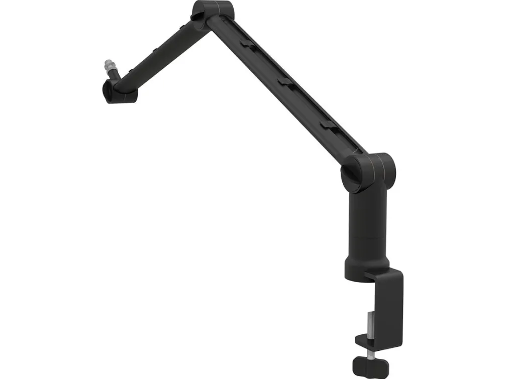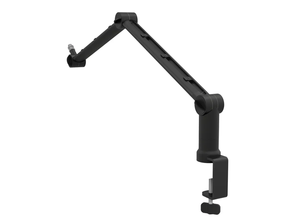 Flexible The microphone arm offers a flexible microphone position that can be aligned according to your wishes. This is helped by the 360° rotatable boom, which is also equipped with a rotary knob for fixing the desired position. The foldable scissor arm allows for compact storage as well as easy transport of the microphone arm.