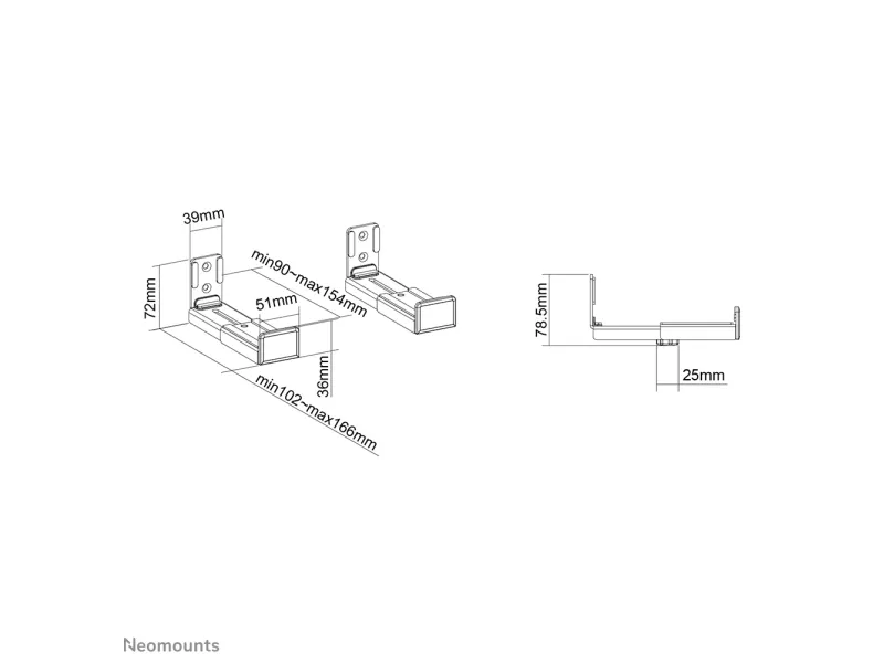The Neomounts AWL29-550BL1 is a universal videobar/soundbar/speaker mount with a maximum weight capacity of 15 kg. The mount can be adjusted in depth from 9 to 15,4 cm and is also height-adjustable. With the mount, a videobar/speaker can be installed either above or below a screen, creating a clean and modern looking installment of your audio hardware. The AWL29-550BL1 is, among others, compatible with the Logitech Rally Bar and Rally Bar Mini.
