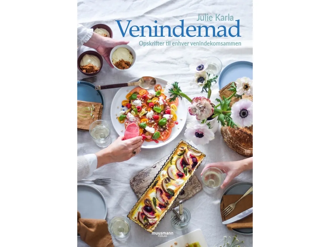 VENINDEMAD giver dig inspiration til maden til din næste venindebrunch, -frokost eller -middag. Bogen indeholder 70 opskrifter, der alle er lette at gå til, men som samtidig nok skal imponere veninderne. Kun det bedste er nemlig godt nok, når veninderne samles. Og når de helt store begivenheder som babyshower, polterabend og surprise-fødselsdag skal fejres, så er der også inspiration at hente her. Her er alt lige fra finger food til smukke kager. VENINDEMAD er en sød gave at give til sine veninder. Den er en kærlig opfordring om at mødes til endnu flere hyggestunder i fremtiden i det bedste selskab og med den dejligste mad. Kender du til den danske keramiker Anne Blacks inspirerende univers, vil du også kunne glæde dig over, at alle opskrifterne i bogen er serveret på hendes smukke service. Vi spiser med øjnene, så derfor må det gerne se indbydende ud, når vi får veninderne på besøg. Om forfatteren Julie Karla er madblogger og har i de sidste 10 år delt sine opskrifter på www.juliekarla.dk og på den engelsksprogede madblog www.karlasnordickitchen.com. Hendes opskrifter optræder jævnligt i både landsdækkende og internationale medier. Ved siden af sine blogs arbejder Julie Karla som madskribent, madstylist og fotograf og udgav i 2019 kogebogen Grøn Morgenmad. Hendes nye bog Venindemad indfanger hendes kærlighed til at lave mad til dem, hun holder af.