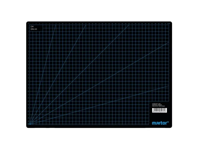 MARTOR SCHNEIDMATTE NR. 3003 - 1 i polypose Skærer den uden at beskadige underlaget? Intet problem. På papir, pap, folie og så videre lægger du bedst en førsteklasses MARTOR-skæremåtte. Den består af tre lag: En fast kerne og to modstandsdygtige yderflader. På den måde gemmer den også kraftige snit løst. Skæremåtten er altid glat og giver dig fortsat ren arbejde. Også nyttig: Påtrykt i cm og tommer. MARTOR-skæremåtterne fås i fem forskellige størrelser, fra meget stor til meget lille. Alt efter anledning og arbejdsmiljø finder du altså altid det passende format på MarTOR.