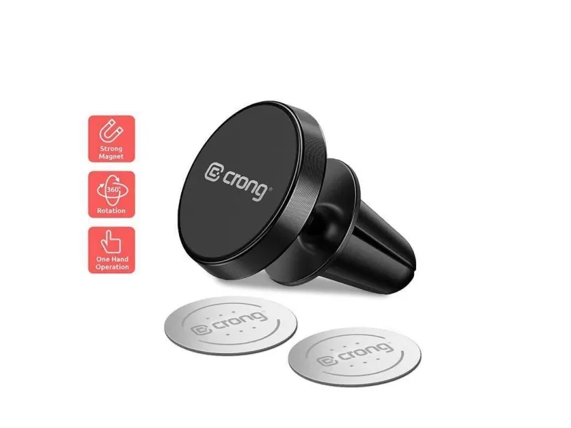 The movable head additionally allows you to position the phone at the right angle for a convenient view of traffic applications. The clip that attaches to the grille is made of hard rubber that does not scratch the plastic.Crong CRG-CH1-BLK. Mobile device type: Mobile phone/Smartphone, Type: Passive holder, Proper use: Car, Product colour: Black