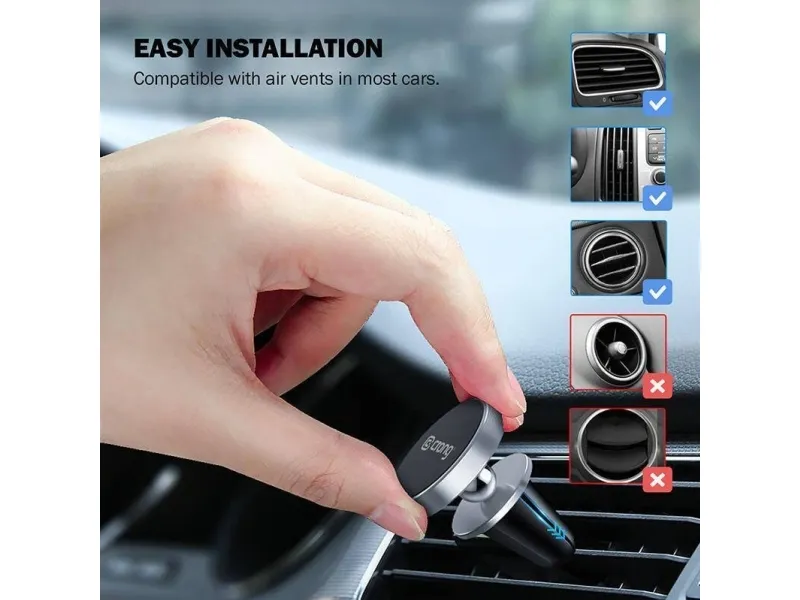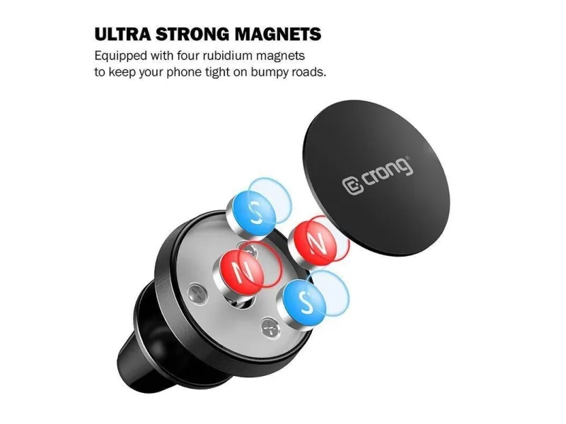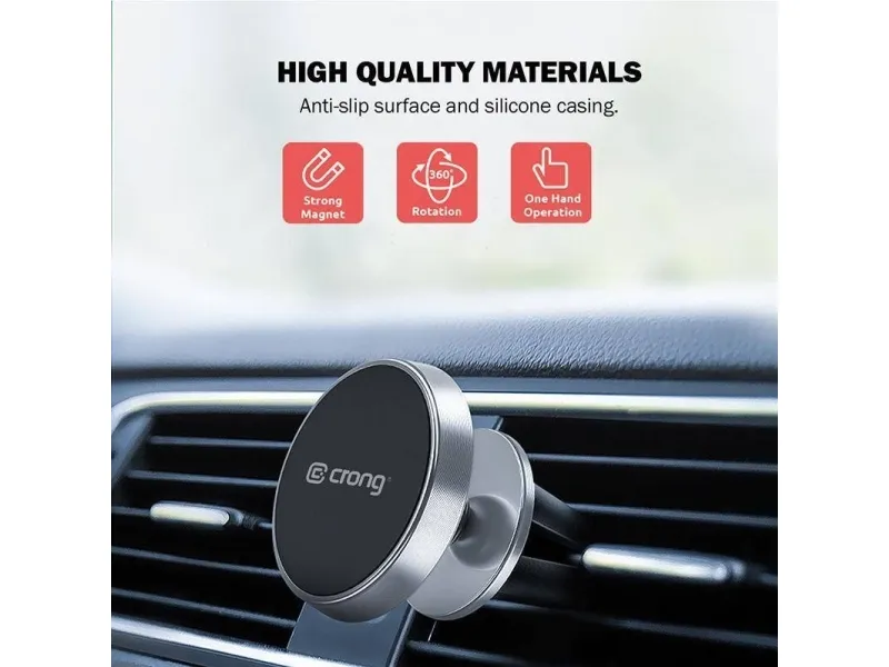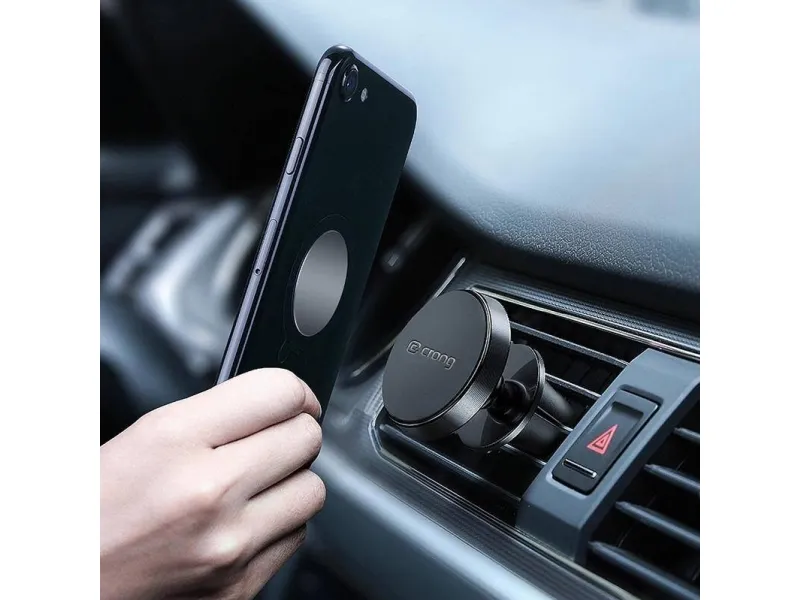 Magnetic car mount for phone that attaches to the grille. The holder is equipped with four magnets, which allow you to quickly and securely attach even a larger smartphone to it.