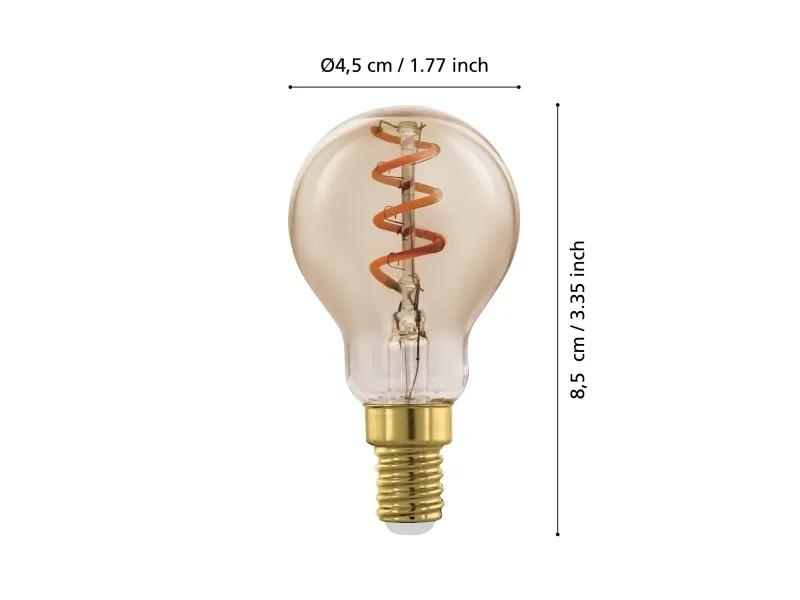 Eglo - LED-filamentlyspære - form: P45 - E14 - 4 W (ekvivalent 15 W) - varmt hvitt lys - 2000 K - ravgul