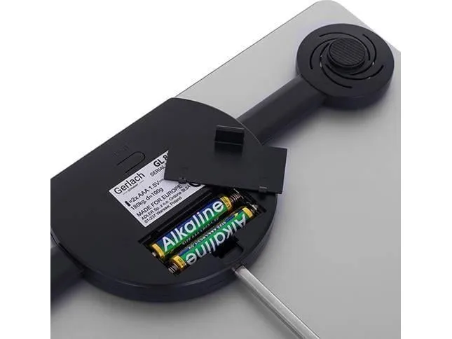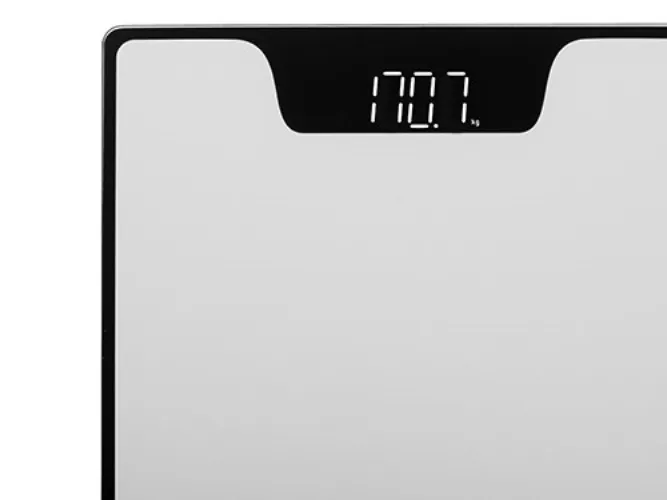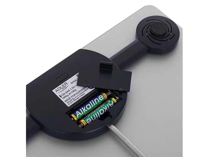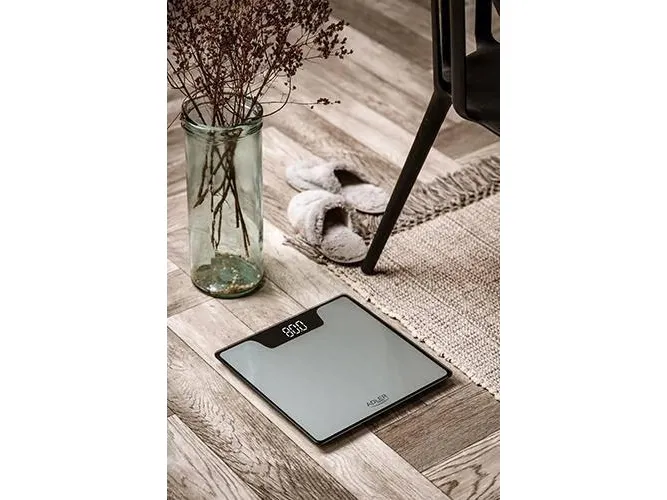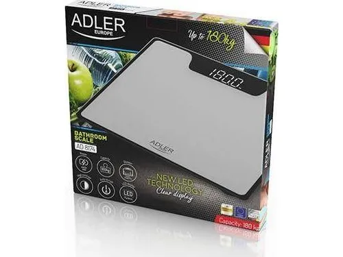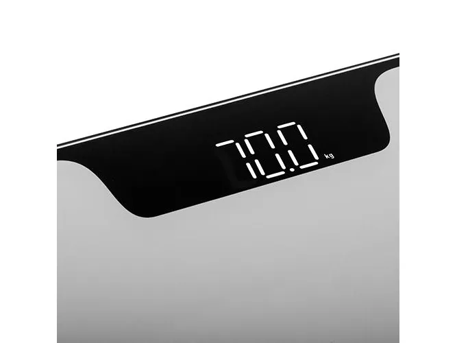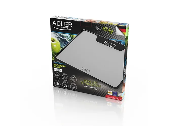 Capacity: 180kg/400lb. Precision: 100g/0,2lb. Units of measurement: kg, lb. High contrast LED display. Color: silver Weighing surface: 300mm x 300mm Tempered glass platform: 6mm Power: battery 2x 1.5V (AAA) included