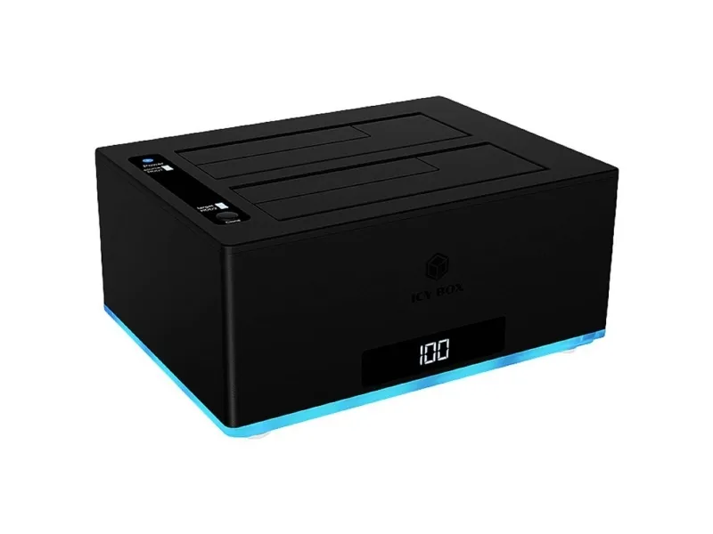 The IB-127CL-U3 docking and clone station combines performance and modern design like no other. USB 3.2 (Gen 1) with 5 Gbit/s and UASP support paired with a new and fresh RGB design. So the docking and clone station also cuts a fine figure visually. Clone bootable SSDs or HDDs easily and quickly at the touch of a button without using a PC (stand alone) or use both bays in SINGLE mode to operate two drives independently.