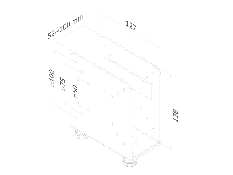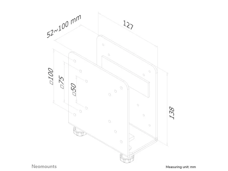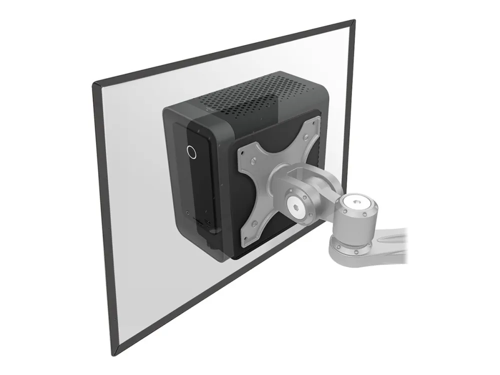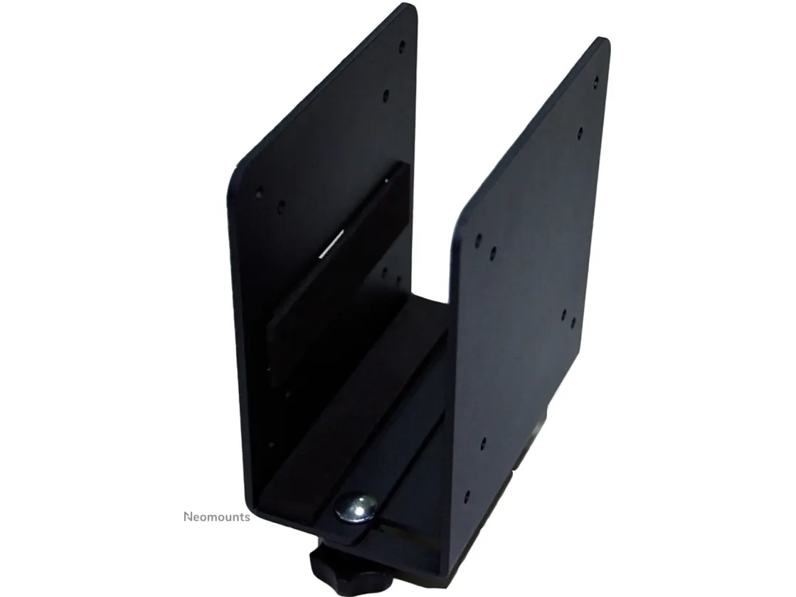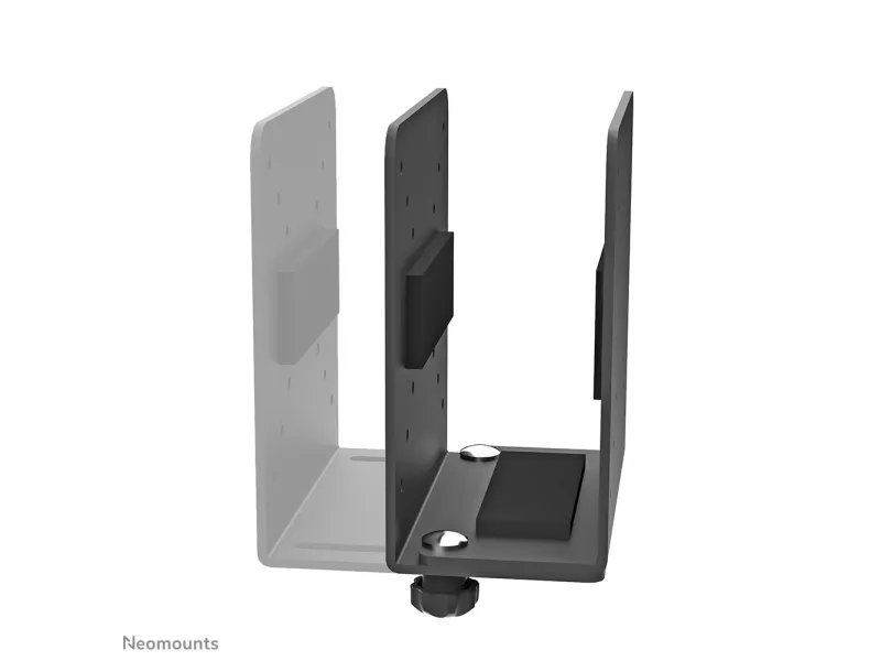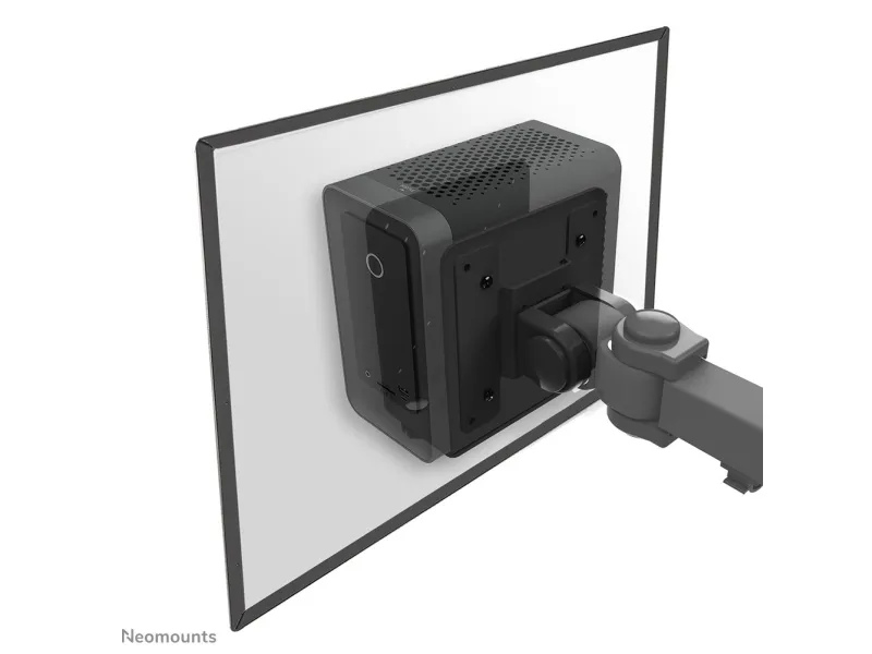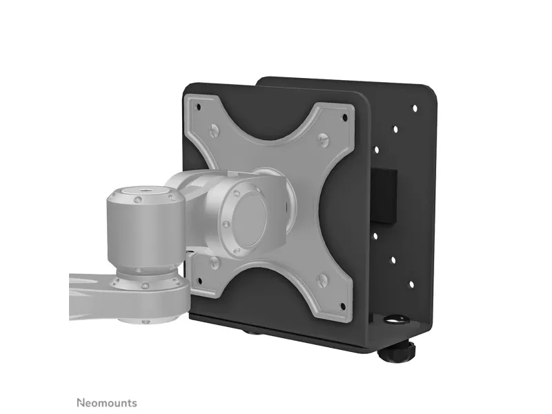 The Neomounts thin client mount, model THINCLIENT-20, allows you to mount a thin client computer to a monitor mount. A thin client mount creates a neat and clean desk because it's stored behind the monitor and doesn't use any valuable desk space. Increase the lifetime of your computer due to reduced intake of dust and dirt. Keep the workplace clean without computers on the desk. This Neomounts thin client mount allows vertical installation of thin client computer between the screen and monitor mount. This product includes VESA50, VESA75 and VESA100 hole pattern to simplify installation with flat screens and flat screen mounts. Hide your cables and keep the workplace nice and tidy. Easy to adjust in width and depth to fit most thin client PCs.