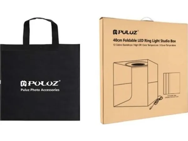 Photo light box: 40 x 40cm 3 color (white light, soft light, warm light) 10-level (1 percent - 100 percent) adjustable studio photo light box, the brightness is times of ordinary light boxes, no strobe and flashing. Apply to professional photographer to take high quality photos. The light diffuser given away makes photos softer. Professional light: Built-in 144 LED 25lm 2835 lamp beads, CRI greater than or equal 90, 3200-6500k color temperature to meet all your needs for photos in different situations. Professional particulate silver film reflective fabric inside diffuses light evenly and avoid vignette. Portable and foldable: Still troubled by the huge photographic equipment? Our photography light box solves all your problems. Handle design can easily set up and carry, installation can be completed within seconds without extra tools. It is foldable, you can carry it anywhere. Multi-angle photography:The light tent allows flexible shooting angle, you can choose any angle for shooting (Front full window, top window). Power supply: 5V USB interface, can be connected to a wall plug, power bank or computer (Note: USB power output voltage exceeding 5V is not supported, such as fast charging/fast charging). Soft light cloth: With a soft light cloth, suitable for products with the props of highly reflecting light and easily showing the contours. Multi-color backdrops: With 6 removable different color backdrops paper, it is double-side different color, total 12 colors will be sent out together with the photo studio light box.Puluz PU5041B. Power source type: USB, Power supply: 11 W. Width: 400 mm, Depth: 400 mm, Height: 400 mm. Package weight: 2.41 kg