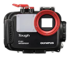 When the action moves from the beach to the water, your Olympus digital camera needn’t be left behind. The PT-051 underwater case has been specially customised for the TG-810/610 camera and is waterproof up to a water pressure equivalent to a depth of 40 metres. This case is perfect for fascinating underwater photography or capturing the thrill of water sports and activities. With its durable, high quality polycarbonate construction, it protects the camera from water while also cushioning it from knocks and bumps on land. Complete control of photo functions, such as zoom and flash mode, is also permitted.\n\n- Waterproof up to a water pressure equivalent to 40m depth\n- Simple handling above and under water\n- All camera functions can be controlled\n- Detachable LCD hood for LCD monitor\n- Neutral buoyancy under water\n- Screw mount for converter lenses and filters provided\n- Internal flash can be used underwater to trigger digital compatible slave\n- Standard tripod socket permits attachment of lighting tray.